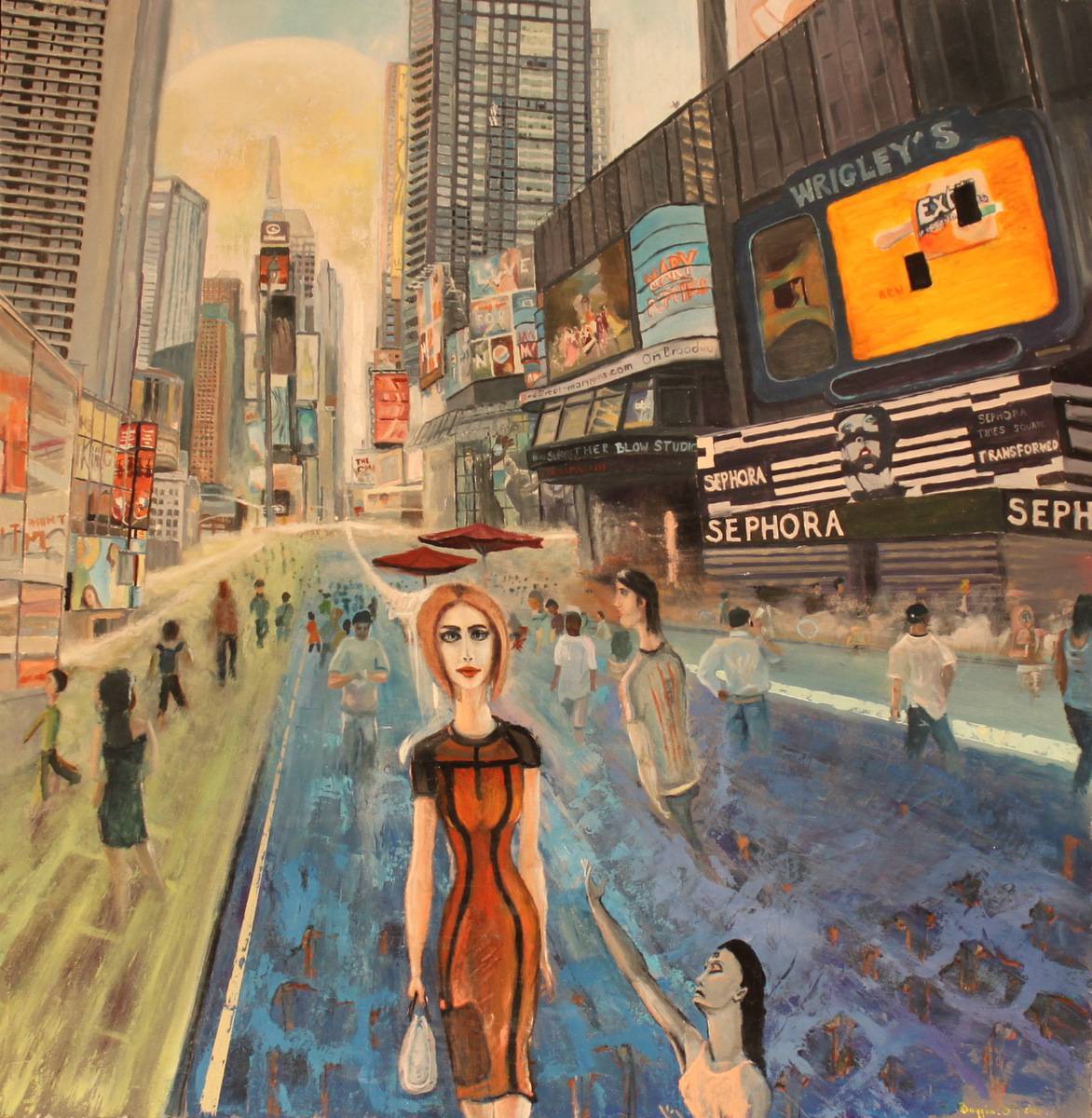 Surrealizm, 54x53cm , olej na płycie ,boki zamalowane na czarno,