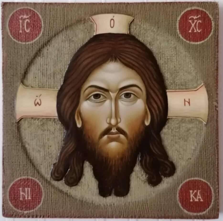 Mandylion to ikona wzorowana na pierwszym, znanym przedstawieniu Jezusa Chrystusa i wiąże się z legendą o królu Abgarze. Mój Mandylion został wykonany na desce pokrytej częściowo gruntem , tło zostało wyklejone tkaniną . Całość w technice tempery jajecznej. Werniks.