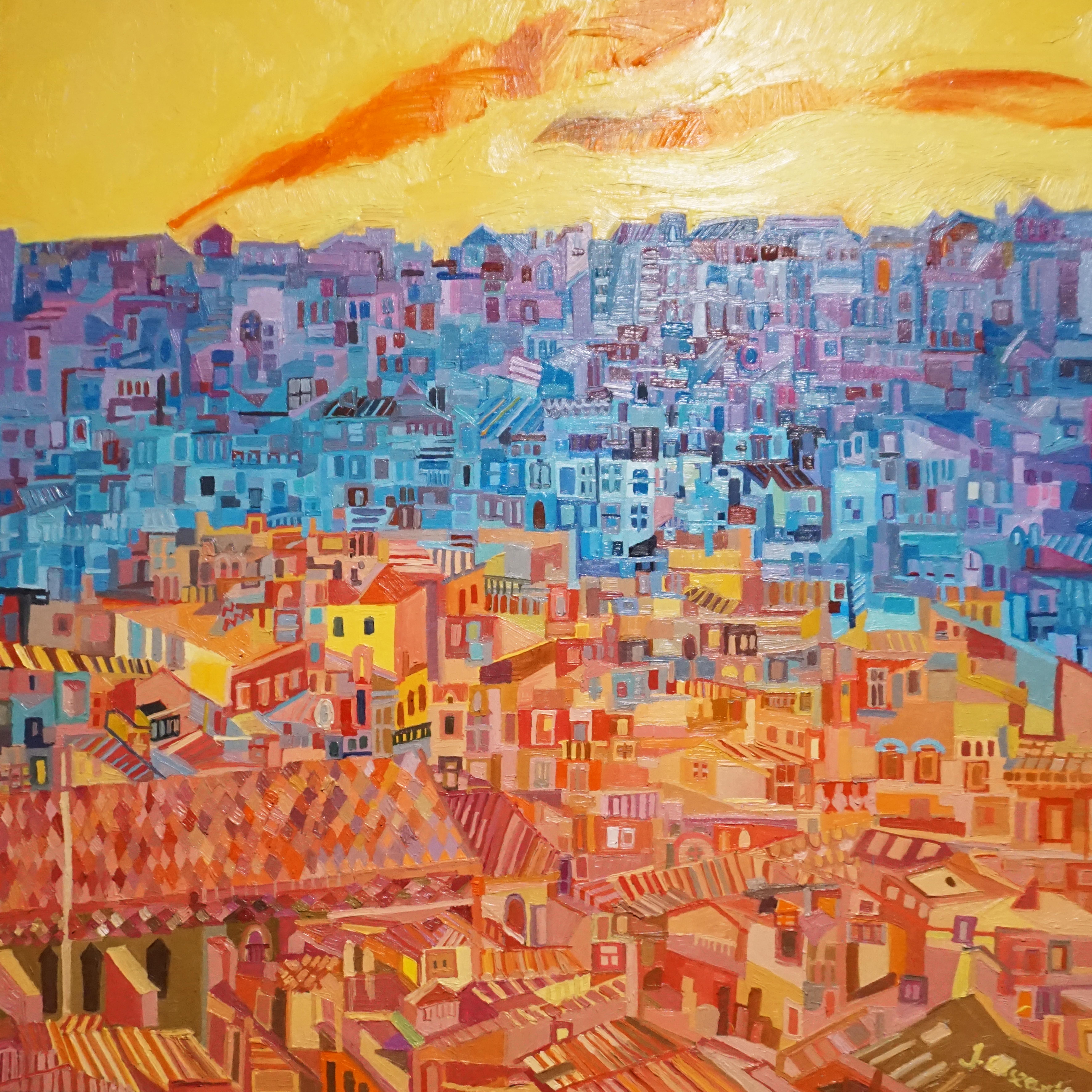 "Miasto U" stanowi część cyklu prac o miastach. Jest obraz olejny o formacie 100 x 100 cm na płótnie. Ważna jest równowaga kompozycyjna i barwa stanowiąca miejski koloryt. Miasto jako przestrzeń ludzkiej egzystencji i dziedzictwo kulturowe stanowi dla artystki inspirację. Więcej informacji o autorce pracy na blogu artystycznym: http://jagodaolszewska.bogspot.com Miastu towarzyszy lektura: "Ale skoro tak, na cóż miasto? Jaka linia oddziela to, co wewnątrz, od tego, co na zewnątrz, turkot kół od wycia wilków? ". I.Calvino.