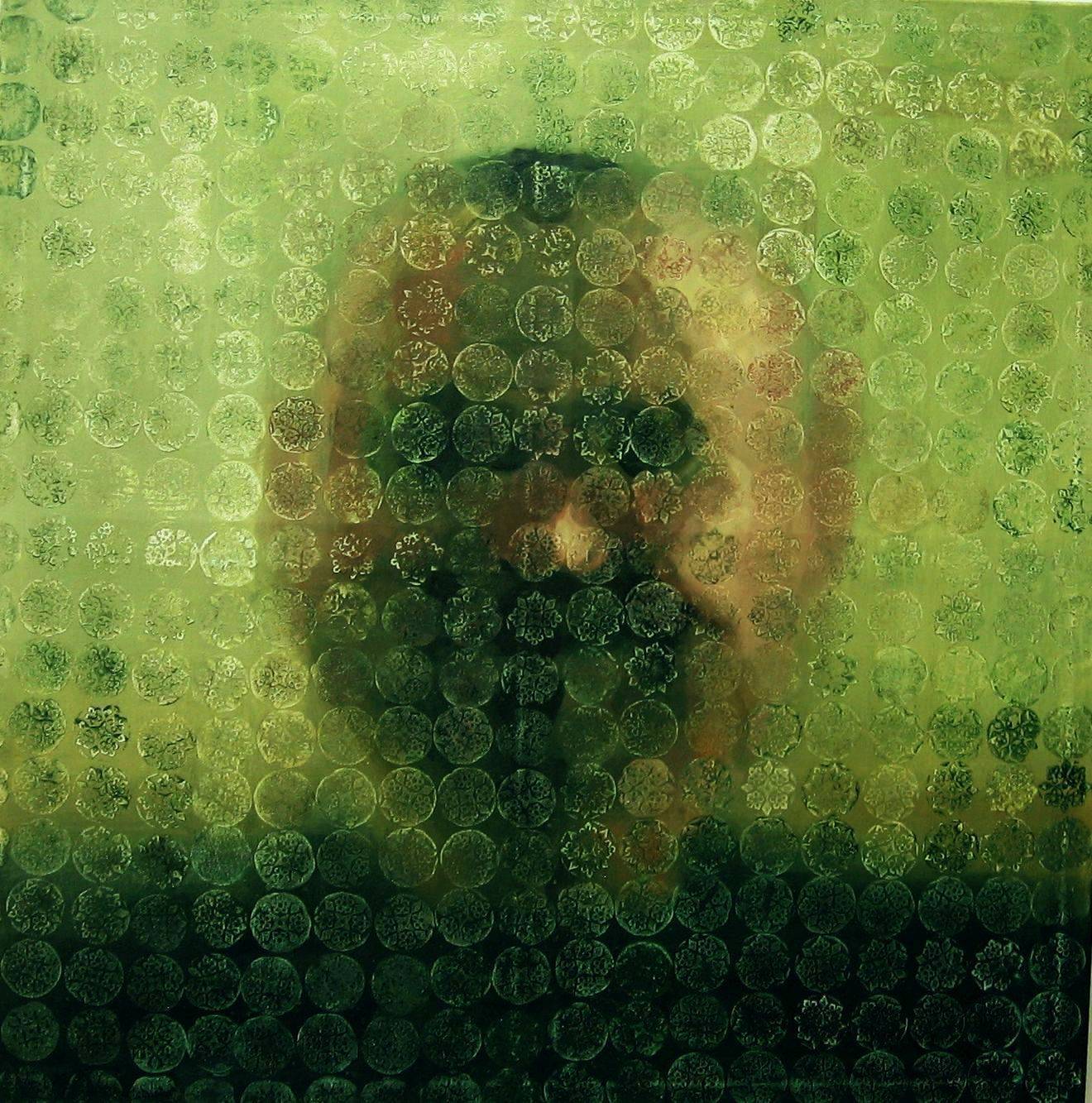 Obraz należy do cyklu "Szyby". To portrety, dla których inspiracją są widoki twarzy w małych okienkach, w drzwiach.