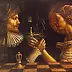 Obraz promienieje tajemniczym urokiem, przyciągając spojrzenia bogactwem kolorów i detali. Brązy i złote tonacje przeplatają się, tworząc ciepłą i nostalgiczną atmosferę. Na pierwszym planie widzimy rycerza i anielicę, pochylonych nad szachownicą. Twarze postaci wyrażają skupienie i zadumę, jakby toczyli cichą, intelektualną walkę. Szaty bohaterów są pełne szczegółów, zdobią je misternie wykonane wzory, a blask na ich twarzach dodaje całej scenie życia. W tle dostrzegamy elementy matematyczne i astralne, co sugeruje połączenie sztuki z nauką. Artysta operuje realistyczną techniką, dbając o każdy detal, a zarazem dodając nieco surrealizmu. Kompozycja jest harmonijna, ale emanuje z niej napięcie. Obraz może budzić u widza różne emocje—od nostalgii po głęboką refleksję. Może zastanawiać, co się stanie dalej, do czego prowadzi ta gra. Czujesz to? Jest coś tajemnego w ich spojrzeniach. Jak mówiłby dzieciak: "Ten pan i pani wyglądają, jakby wiedzieli coś super ważnego!". Styl pisania artysty przypomina technikę "old masters", co dodaje mu timeless jakości. Osobiście czuję tu nutę historycznej powagi, ale też coś jakby echo nieznanego—trochę jak zagadka, która czeka na rozwiązanie.