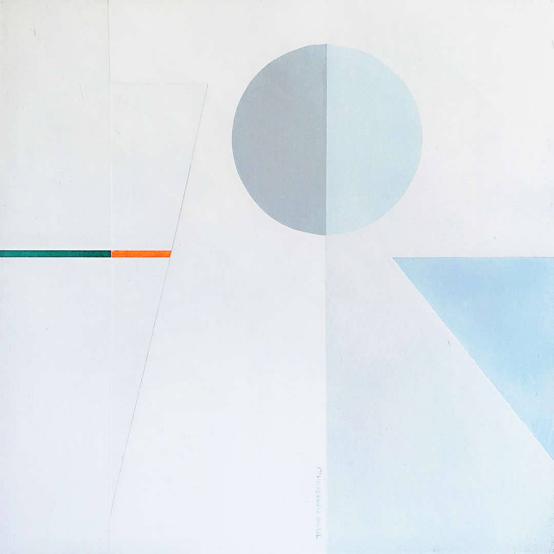 Obraz emanacji spokojem i prostotą, przyciąga uwagę delikatną paletą barw. Przedstawia harmonijną kompozycję geometrycznych kształtów na białym tle. Dominują tu koło i trójkąt w subtelnych odcieniach niebieskiego, które zdają się pływać w otwartej przestrzeni. Smukła, pomarańczowa linia wprowadza element ruchu i zaskoczenia, jak gdyby była sygnaturą artysty. Patrząc na ten obraz, odczuwamy spokój. Dzieło wydaje się być minimalistyczne, ale ma głębszy przekaz. Czasem te proste formy potrafią skłonić nas do refleksji nad sensem życia. Czyżby artysta chciał nam powiedzieć, że mniej znaczy więcej? A może to taki „secret message”, który każdy musi odkryć samodzielnie. Styl jest surowy, ale z nutą finezji. Technika przypomina nieco pracę z dziećmi, jakby autor bawił się formą i kolorem. „To wygląda jak dom, ale bez dachu!”, mogłoby rzec 7-letnie dziecko, dostrzegając figury jako elementy codziennego otoczenia. Widz, konfrontując się z tym obrazem, może poczuć pewne "calmness", równowagę wewnętrzną. Prostota w najczystszej postaci ma niekiedy moc, by otworzyć przed nami nowe perspektywy. A Ty, co dostrzegasz w tych nieskomplikowanych liniach?