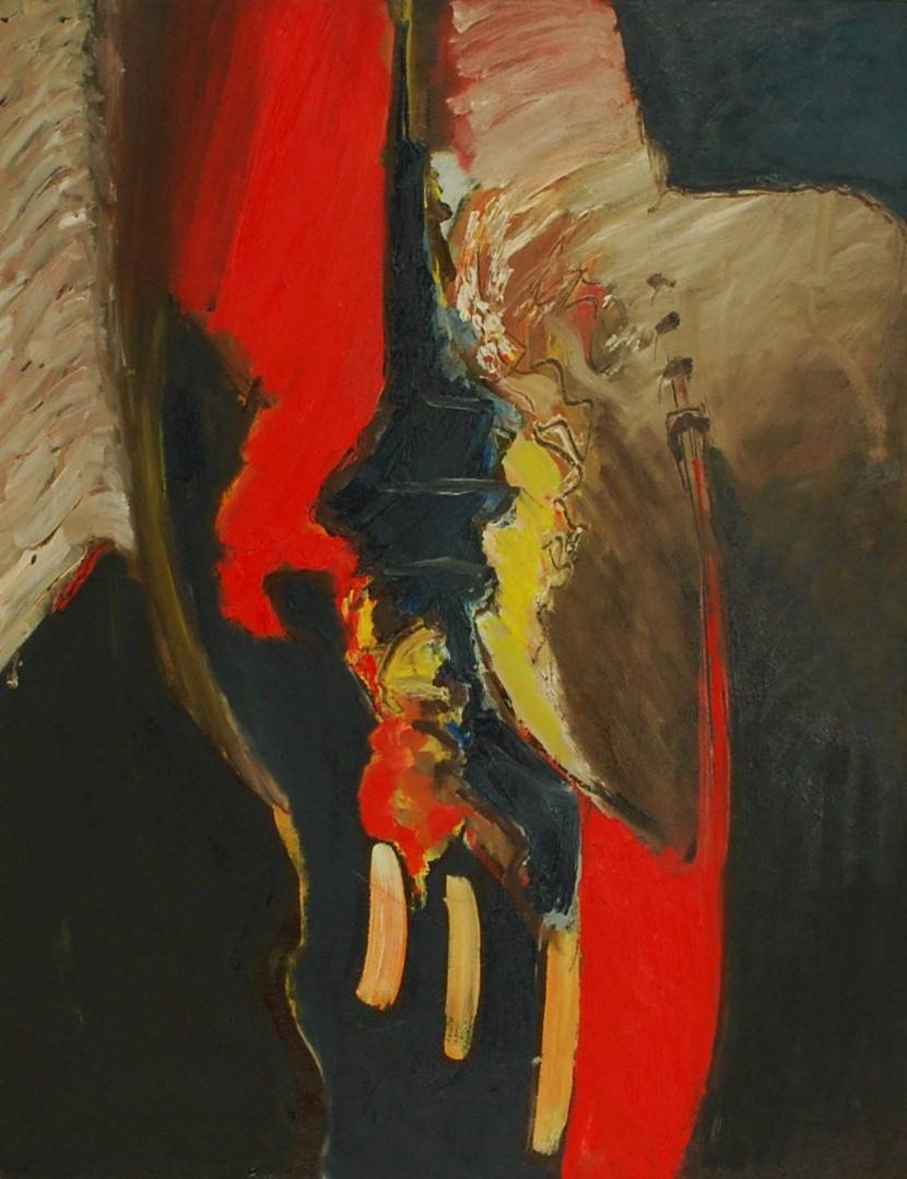Obraz z cyklu prac abstrakcyjnych z końca lat 90tych. Profesjonalne podobrazie. Ranty oblistwowane