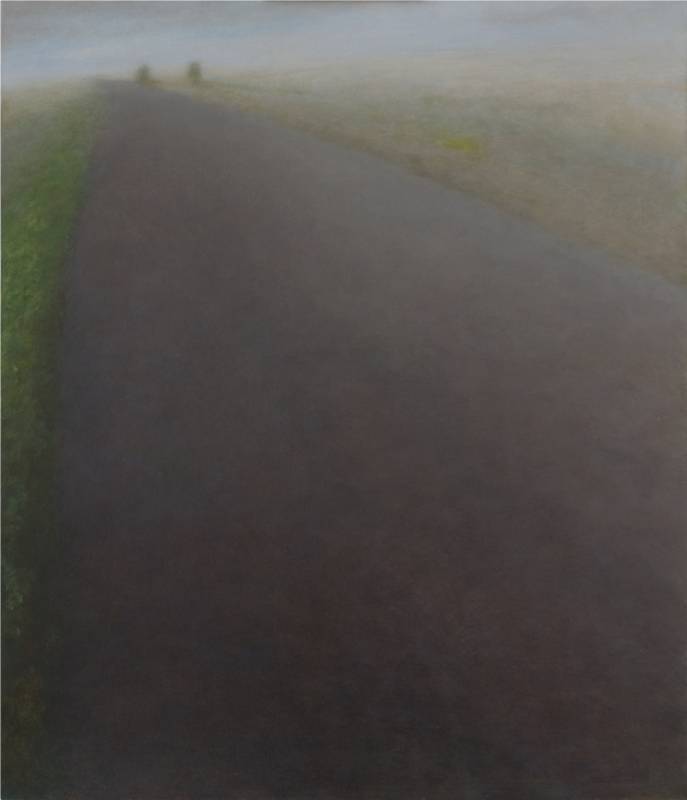 Na obrazie przeważają delikatne, stonowane kolory, które tworzą magiczny krajobraz. Szarawe odcienie drogi prowadzą nas w głąb tajemniczej mgły, gdzie horyzont zdaje się rozmywać. Z boku drogi ciemna zieleń dodaje nieco życia i kontrastu, choć jest subtelna i wyciszona. Kompozycja przyciąga wzrok swoją prostotą – droga wydaje się być nieskończona. Jest w tym coś melancholijnego. Atmosfera jest nieco nostalgiczna i spokojna. Obraz emanuje ciszą, jakby czas się zatrzymał. Czujesz lekki powiew wiatru, który tylko pogłębia tę mistyczną ciszę. Artysta użył miękkich przejść tonalnych, co nadaje całości ethereal feel. Technika zdaje się być akwarelowa, choć w bardziej matowym wariancie, zacierając kształty. Obraz budzi różne emocje. Może tęsknotę za podróżą lub refleksję nad życiem, gdzie każda droga prowadzi do nieznanego celu. Odbiorca może poczuć się zagubiony, ale i zaintrygowany. Obraz jest jak sen, w którym chcesz się zanurzyć i zaszyć na chwilę. 7-latek powiedziałby: "To droga, która prowadzi do przygody!". Każdy znajdzie tu coś dla siebie, bo to interpretacja ma tu kluczowe znaczenie.