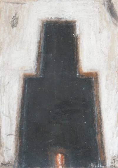 Obraz przyciąga wzrok prostotą kompozycji i surowością formy. Dominującym kolorem jest ciemna czerń misternie otoczona szorstką bielą. Kształt przypominający coś abstrakcyjnego - może wieżę, a może cień. Szczerze, przypomina mi to stare, tajemnicze drzwi do innego wymiaru. Artysta użył techniki przypominającej pastele, nadając obrazowi miękkość i eteryczny nastrój. Klimat dzieła wydaje się tajemniczy, jakby coś ukrywał albo prowadził do głębszych przemyśleń. Czuje się w nim pewną "mystery". Patrząc, można odnieść wrażenie, że to symbol izolacji lub wewnętrznego spokoju. Choć początkowo może wydawać się przytłaczający, zaprasza do kontemplacji. Może trochę jak nocne niebo z jedną gwiazdą, która zaraz rozbłyśnie. To dzieło może wzbudzać refleksję nad tym, co ukrywamy w sobie, a co wydobywamy na zewnątrz. Dzieciak powiedziałby: "Widzę tu wielką lodówkę!". Normy poprawności tutaj się rozluźniają, ale to nie szkodzi, bo emocje ważniejsze niż sztywne reguły. Obraz przypomina, że czasem w prostocie kryje się najwięcej treści i tajemnic.