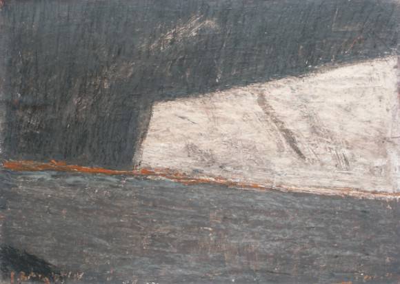 Na obrazie dominuje mroczne zestawienie kolorów: głębokie odcienie szarości kontrastują z jasnym, niemal białym elementem wyróżniającym się pośrodku. Cała kompozycja wydaje sie jakby była podzielona na dwie części - ciemną i jasną, co tworzy dynamiczne napięcie. Z boku pojawia sie cienka linia w odcieniu rdzy, która dodaje nieco ciepła do tej chłodnej kolorystyki. To prawdziwy eye-catcher Nastrój obrazu jest nieco tajemniczy, nieco melancholijny. Zdaje się, że dzieje się coś ukrytego, coś, co chciałoby się odkryć. Może to być obraz burzy nad horyzontem, albo cichej nocy, kiedy mrok miesza się ze światłem gwiazd. Malarskie techniki użyte przez artystę wskazują na bogatą teksturę - być może są to szerokie pociągnięcia pędzla lub szorstka faktura płótna Odbiorca może poczuć się zaintrygowany lub nawet nieco przytłoczony. Takie uczucia budzą się, gdy próbujemy odnaleźć sens w chaotycznej prostocie. Dziecko powiedziałoby: "To wygląda jak wielki cień na ścianie". Rzeczywiście, obraz wydaje się rzucać cień zarówno metaforyczny, jak i fizyczny Styl malarski przypomina nieco abstrakcję z elementami surowego minimalizmu. Jest to dzieło dla kogoś, kto ceni "less is more". Zwracającą uwagę surowość połączona z enigmatycznym klimatem, może wzbudzić różnorodne emocje, od podziwu po refleksję nad ulotnością chwili.