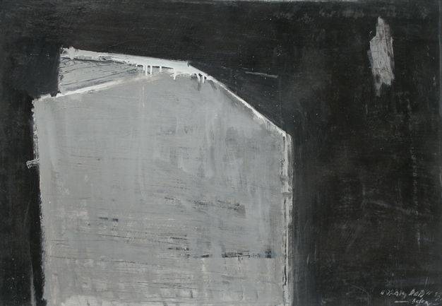 Na obrazie dominuje surowa paleta szarości i czerni, które budują prostą, ale intrygującą kompozycję. W centrum znajduje się duża, szara bryła z wyraźnymi, geometrycznymi krawędziami, jakby niedokończony szkic budowli. Te ciemniejsze plamy i smugi farby dodają głębi i tekstury, tworząc efekt tajemniczości. Atmosfera jest nieco melancholijna, jakby wszystko spowite było ciszą. To trochę jak scena z filmu noir, pełna napięcia i niedopowiedzeń. Artysta wykorzystuje technikę grubych pociągnięć pędzla, które nadają całej pracy surowy, niemal industrialny charakter. Można poczuć się jak w innej rzeczywistości, gdzie wszystko jest prostsze, a może trochę smutniejsze. "Patrz, to wygląda jak góra!" – zawołałby mały odkrywca patrząc na obraz. Ten minimalistyczny styl sprawia, że człowiek zaczyna się zastanawiać, co tak naprawdę jest ważne. Płótno przyciąga wzrok i zaprasza do snucia własnych interpretacji; może to zapomniane wspomnienie, a może zwykły kawałek betonu. Tak czy inaczej, jest w tym wszystkim coś deeply moving, co sprawia, że chce się myśleć więcej, odczuwać więcej. To dzieło może wywołać refleksję o prostocie życia i pięknie ukrytym w codziennych elementach.