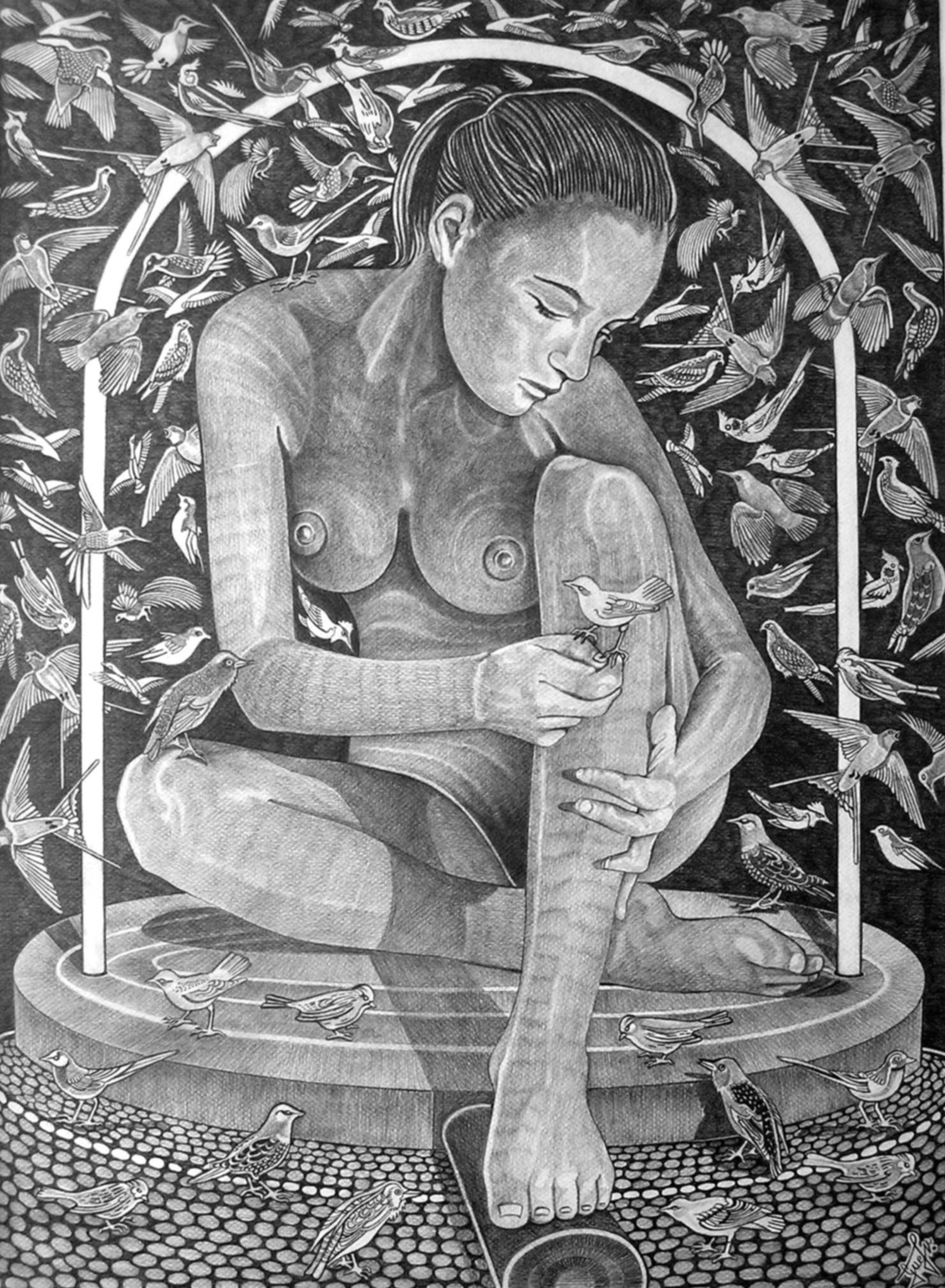 Ptasia nawiązanie do powieści Ptasiek mimo urody czy niewątpliwych zalet człowiek żyje w swoim wnętrzu nie zawsze zrozumiałym dla otoczenia. Nasza egzystencja jest taką klatką uzależnień,trudno zatem z niej się wyrwać.Dlatego człowiek o określonej wrażliwości szuka wyzwolenia i otacza się np.zwierzętami.