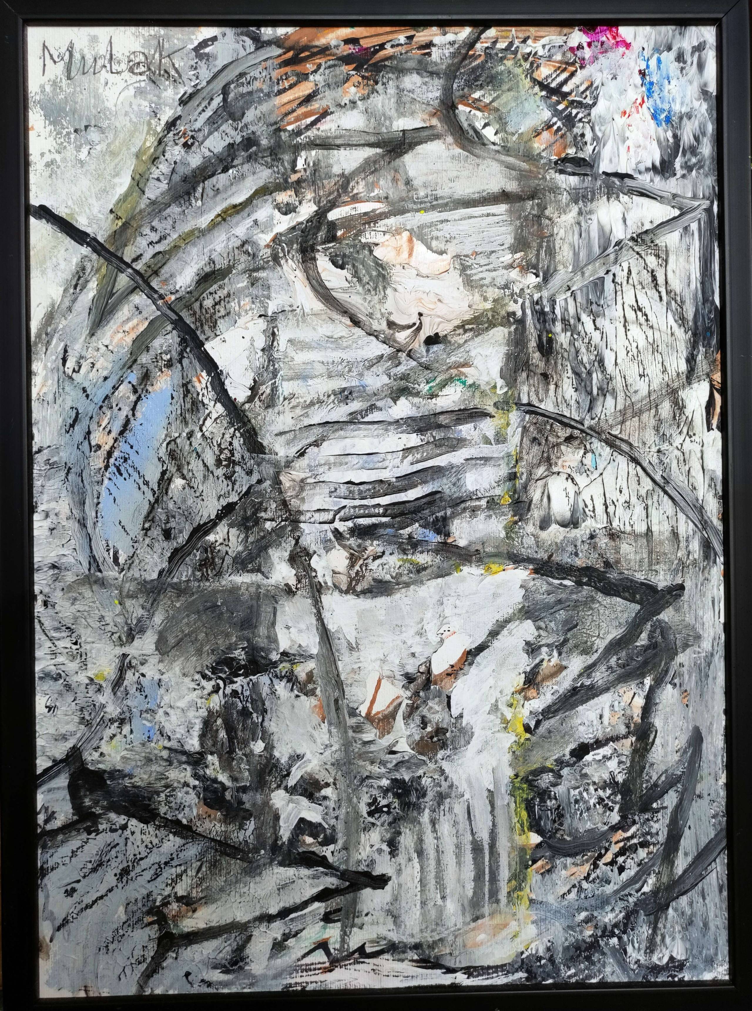 Obraz emanuje chaotycznym pięknem. Widoczne są tu przemykające tonacje szarości, które przeplatają się z delikatnymi akcentami błękitu i różu. Linia jest nieregularna, pełna intensywnych pociągnięć, które tworzą zawiły labirynt kształtów. Wzrok wędruje, próbując uchwycić ukryte znaczenie tego twórczego zamętu. Atmosfera obrazu jest trochę tajemnicza z nutą melancholii. Artysta zastosował technikę impasstową, co nadaje dziełu niepowtarzalną fakturę. Farba nałożona grubymi warstwami, przyciąga wzrok, jakby chciała coś opowiedzieć. Patrząc na to, czujesz wewnętrzne poruszenie, jakby jakiś "mystery" ukryty był pod spodem. Może to odzwierciedlenie emocjonalnego chaosu, który każdy z nas czasem nosi w sobie? Myślę sobie, że ten obraz to jak szalony sen, w którym wszystko i nic nie ma znaczenia. Dziecko mogłoby powiedzieć: "To wygląda jak burza w lesie!". Artystyczna wolność bije z każdej krzywizny, a surowość wykonania zmusza do dłuższego zastanowienia. Obraz, choć abstrakcyjny, zdaje się szeptać coś do duszy.