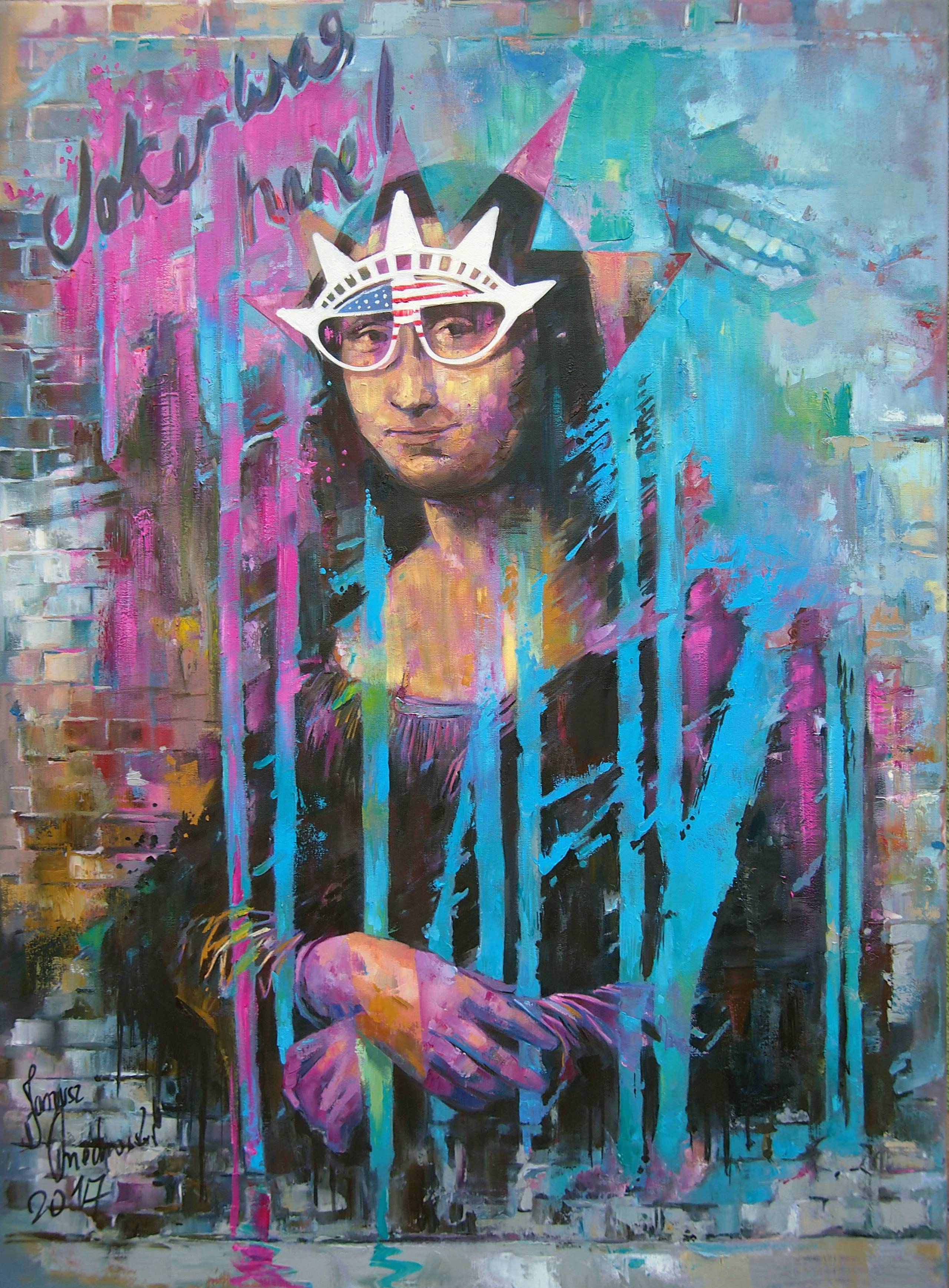 "CotaMonaMa" olej na płótnie 100x70cm 2017 Obraz prezentowany na wystawie Pop-Art Story Art Bistro Stalowa 52 Warszawa luty marzec 2017 oraz na wystawie "Niezła Sztuka" w DOTS boutique marzec - kwiecień 2017