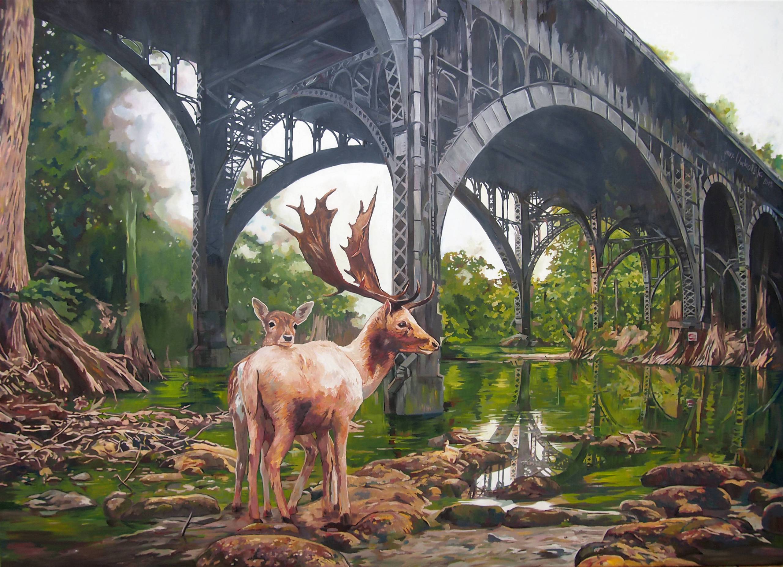 Obraz Wiadukt II. Olejna praca na płótnie. Obraz sygnowany certyfikat autentyczności.