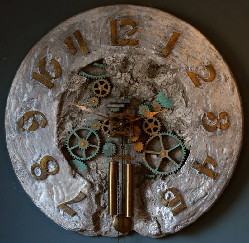 Ten obraz ukazuje niezwykły zegar, który niemal wyrosł z kamiennej powierzchni. Dominują tu szare i złote odcienie, które splatają się z zielonymi zębatkami tworzącymi serce tej machiny. Na pierwszy rzut oka, wszystko zdaje się być w wiecznym ruchu, mechanizmy poprzetykane zardzewiałymi fragmentami metalu wyglądają jak artefakty z przeszłości. Atmosfera jest pełna tajemniczości, trochę jak w bajce o wiecznym czasie, gdzie wszystko może się wydarzyć. Styl retro-steampunkowy przyciąga wzrok, a tekstura i szczegóły sprawiają, że nie można oderwać wzroku. Artysta zastosował technikę, która przypomina rzeźbienie, dzięki czemu zegar zdaje się wynurzać z kamiennej powierzchni w fascynującym reliefie. Jego artystyczne podejście łączy surowość materiału z finezją detalu. Takie dzieło może wywoływać uczucia nostalgii, refleksji nad przemijaniem czasu — może nawet skłonić do zadumy nad mechaniką życia. Ej, ten zegar wygląda jak z bajki dziadka! Patrząc na to dzieło, czuję jakby czas stanął w miejscu, a zarazem toczył się z mocy dawnych lata. A vintage charm przyciąga każdą myśl ku temu, co było, i co może jeszcze nadejść.