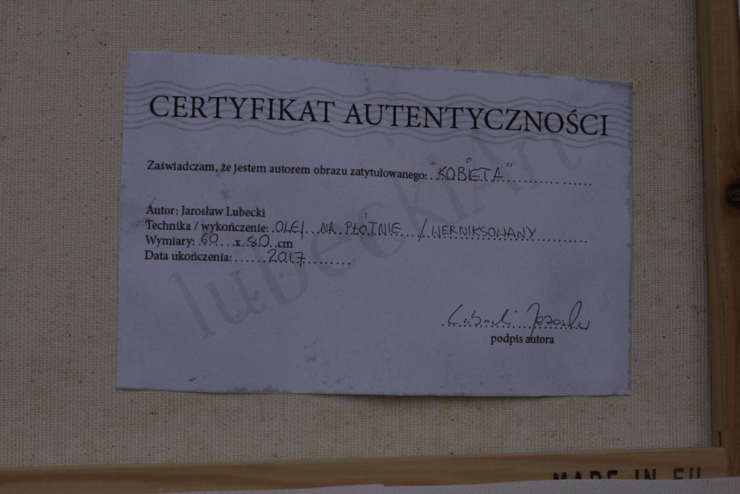 obraz olejny, oprawiony, werniksowany, dołączam certyfikat autentyczności