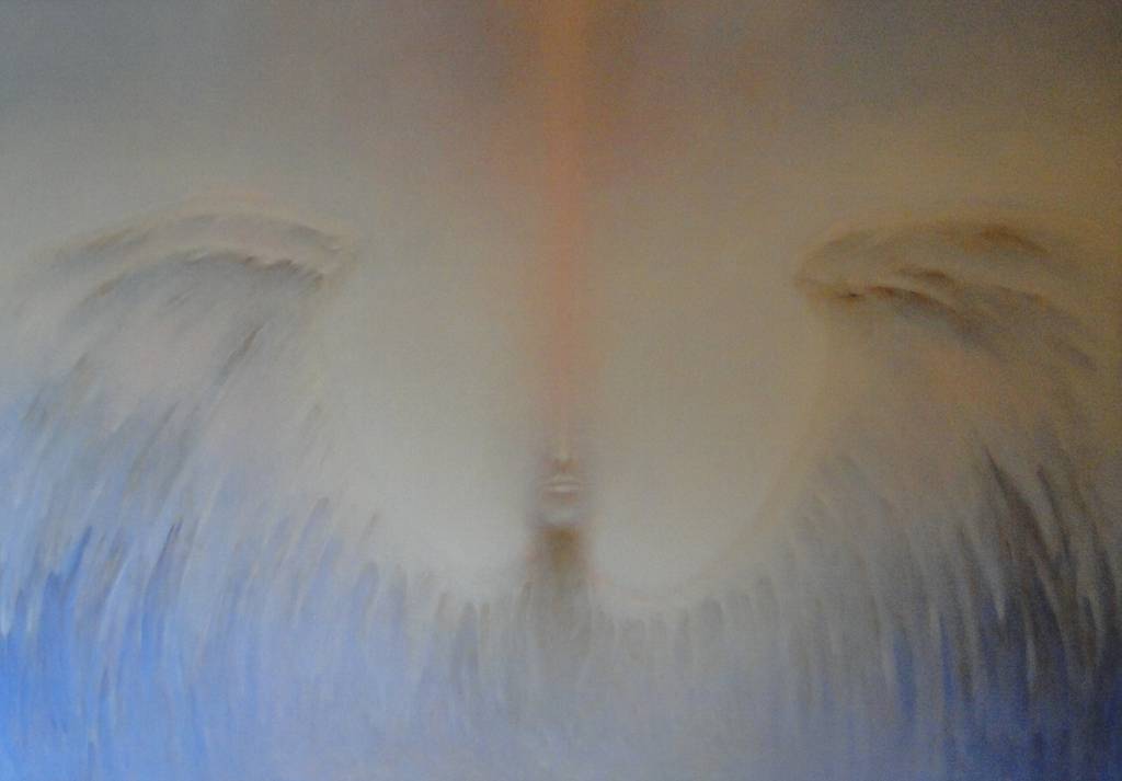 Na obrazie dominuje subtelna gra barw, od delikatnych odcieni beżu po chłodne błękity. Kompozycja przypomina eteryczne skrzydła anioła, rozciągające się symetrycznie z centralnej, rozmytej postaci. Wszystko to tworzy atmosferę ciszy i spokoju, jakbyśmy byli świadkami czegoś nieuchwytnego i tajemniczego. Artysta zastosował technikę zacierania konturów, co nadaje obrazowi lekkiej mglistości. Wprowadza to nas w stan refleksji, pozwala oderwać się od rzeczywistości. Może to nawet trochę snu przypominać. Patrząc na obraz, czuć jakby czas zwalniał, a my zatapialiśmy się w marzeniach. "Look, mamo! To chyba anioł!" - powiedziałby zachwycony malec. Ten obraz zdaje się przemawiać do naszego najgłębszego "ja", budząc w nas uczucie spokoju, a zarazem tęsknoty za czymś bardziej transcendentnym. Ostatecznie, artysta poprzez delikatną paletę i organiczne formy zaprasza nas na chwilę zadumy nad subtelnością świata i wewnętrznego pokoju.