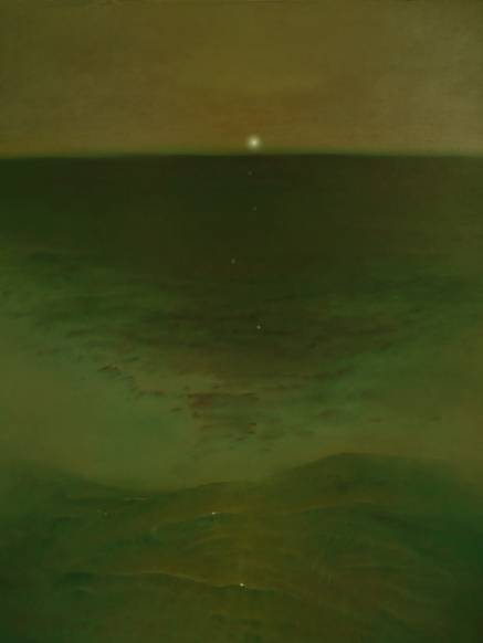 Na obrazie widzimy zjawiskowy zachód słońca nad spokojnym morzem. Tonacje zieleni i brązu dominują na całej powierzchni, tworząc harmonijną, melancholijną atmosferę. W centrum kadru, na horyzoncie, maleńka kula słońca trwa w swojej ostatniej chwili dnia. Kompozycja jest prosta, ale zarazem głęboko oddziałująca na zmysły; pociągnąć za sobą tę lekkość, z jaką fale dotykaj brzeg. Technika użyta przez artystę, prawdopodobnie olej na płótnie, pozwala na osiągnięcie aksamitnego połysku wody. Artysta zdołał uchwycić essentielne "quietness" w swoim dziele. Dzieło może prowokować różnorodne emocje - od spokoju po zadumanie. Może nawet wzbudzić tęsknotę za momentami podobnymi do tego, co widzimy na obrazie. U niektórych widzów wywoła to refleksję nad upływającym czasem i nieuchronnością zmierzchu. Takie obrazy przypominają mi, że warto czasem zwolnić i po prostu być. Mamo, to wygląda jak zielone morze w nocy! Użycie koloru w dziele jest zachwycająco sugestywne, jakby każdy pociągnięcie pędzla skrywał swoją własną tajemnicę. Obraz emanuje ciszą, momentem zatrzymanym w czasie, zapraszając nas do refleksji i kontemplacji.