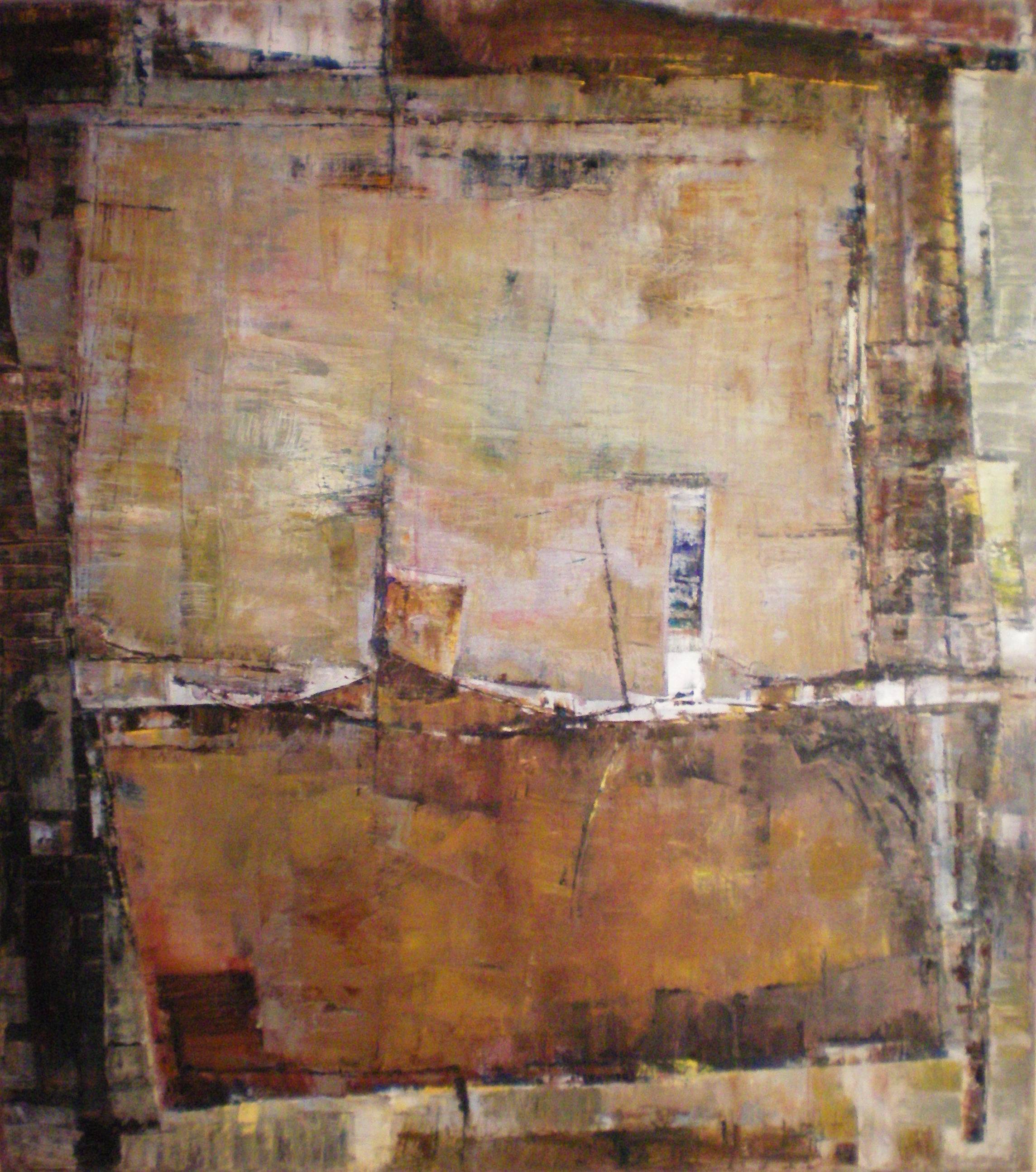 Obraz emanuje zaskakującą mieszanką ciepłych odcieni brązu i beżu, które przenikają się nawzajem, tworząc harmonijną, choć nieco chaotyczną kompozycję. Prostokątne kształty nakładają się na siebie, subtelnie przesuwając wzrok widza po całej powierzchni dzieła. Każdy malutki element wydaje się być przypadkowo umieszczony, a jednak współgra w obrębie całej kompozycji. Czy to nie jest fascynujące? Technika artystyczna, przypominająca technikę impasti, nadaje obrazowi tekstury, które tworzą wrażenie przestrzenności. Atmosfera obrazu jest spokojna, lekko nostalgiczna. Można by rzec, że to takie common sense, prawda? Wydaje się jakby obraz opowiadał własną, cichą historię, której można się doszukać, jeśli tylko dostatecznie długo się w niego wczytać. Dla mnie osobiście przynosi poczucie spokoju, jak niedzielne popołudnie spędzone z książką. Styl jest nieco abstrakcyjny, ale z delikatnym flairem surowości. Patrzę na to i zastanawiam się: co autor miał na myśli? Może chciał pokazać fragility naszego świata, a może to tylko moje wyobrażenie. Obraz budzić może różne emocje, od zadumy po lekką melancholię. To trochę, jakby oglądać chmury i próbować dostrzec różne kształty. Kończąc, mogę tylko powiedzieć: „Patrzenie na te kolory jest super extra!”.