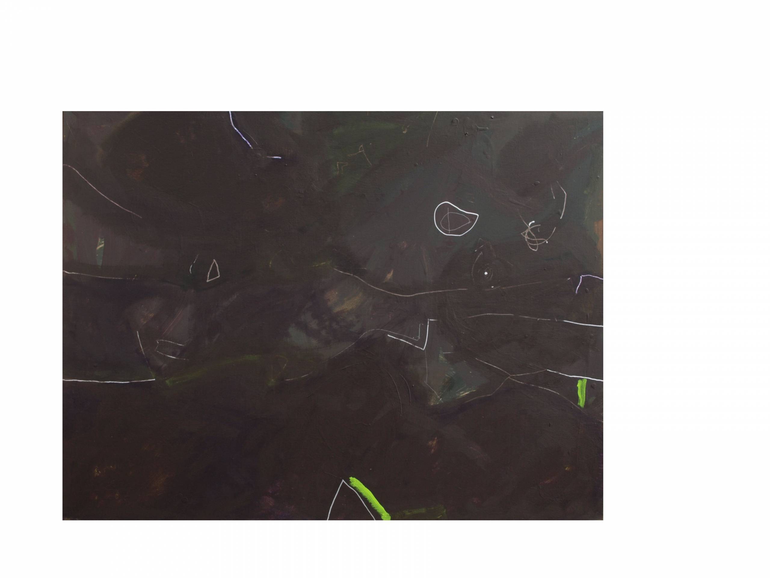 Na obrazie dominuje ciemność, z której subtelnie wyłaniają się linie i kształty, jakby ktoś odręcznie kreślił na czarnym tle. Odcienie głębokiej zieleni i brązów tworzą intrygującą kompozycję, pełną skrytej głębi. W kilku miejscach pojawiają się jaśniejsze akcenty, które dodają obrazu dynamiki— it's fascinating. Kompozycja wydaje się być chaotyczna, choć to chaos przemyślany. Przypomina to trochę nocne niebo zasnute chmurami, gdzie księżyc przebija się przez zasłonę. Malunek emanuje nieco tajemniczym i melancholijnym nastrojem. Można by pomyśleć, że artysta chciał ukazać podświadome emocje, które tkwią gdzieś głęboko. Technika, jakby malarz bawił się, używając spontanicznych pociągnięć, dodaje obrazu nieco ekspresyjnego uroku. Wzrok wędruje po linii, szukając jakiejś ukrytej historii. Czuję się, jakbym stał na skraju lasu nocą, słuchając szeptów wiatru. Mam wrażenie, że obraz opowiada bajkę, którą można odczuć, ale nie do końca zrozumieć. To tak, jakby moje serce chciało coś powiedzieć, ale nie umie znaleźć słów. Hej, tam jest coś zielonego!