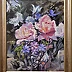 Obraz ,,Zakątek w ogrodzie, róże w słońcu" pochodzi z serii obrazów przedstawiających urokliwe ujęcia natury. Widoczne są na nim charakterystyczne dla artysty, żywiołowe pociągnięcia pędzla dodające życia i pełnej radości obcowania z naturą oświetloną mocnym słońcem. Również tutaj nie znajdziemy ckliwych i nieszczerych wygładzeń faktury farby mających na celu pochlebianie niewykształconemu odbiorcy malarstwa. Obraz jest żywiołem, budzącym radość i pochwałę życia. Mocny akcent różów, podkreśla siłę wyrazu kwiatów które są dla artysty symbolem narodzin życia. Obraz oprawiony w drewnianą ramę w kolorze spatynowanego ciepłego metalu, co powiększa jego rozmiary ( ok. 62 cm x 52 cm ).