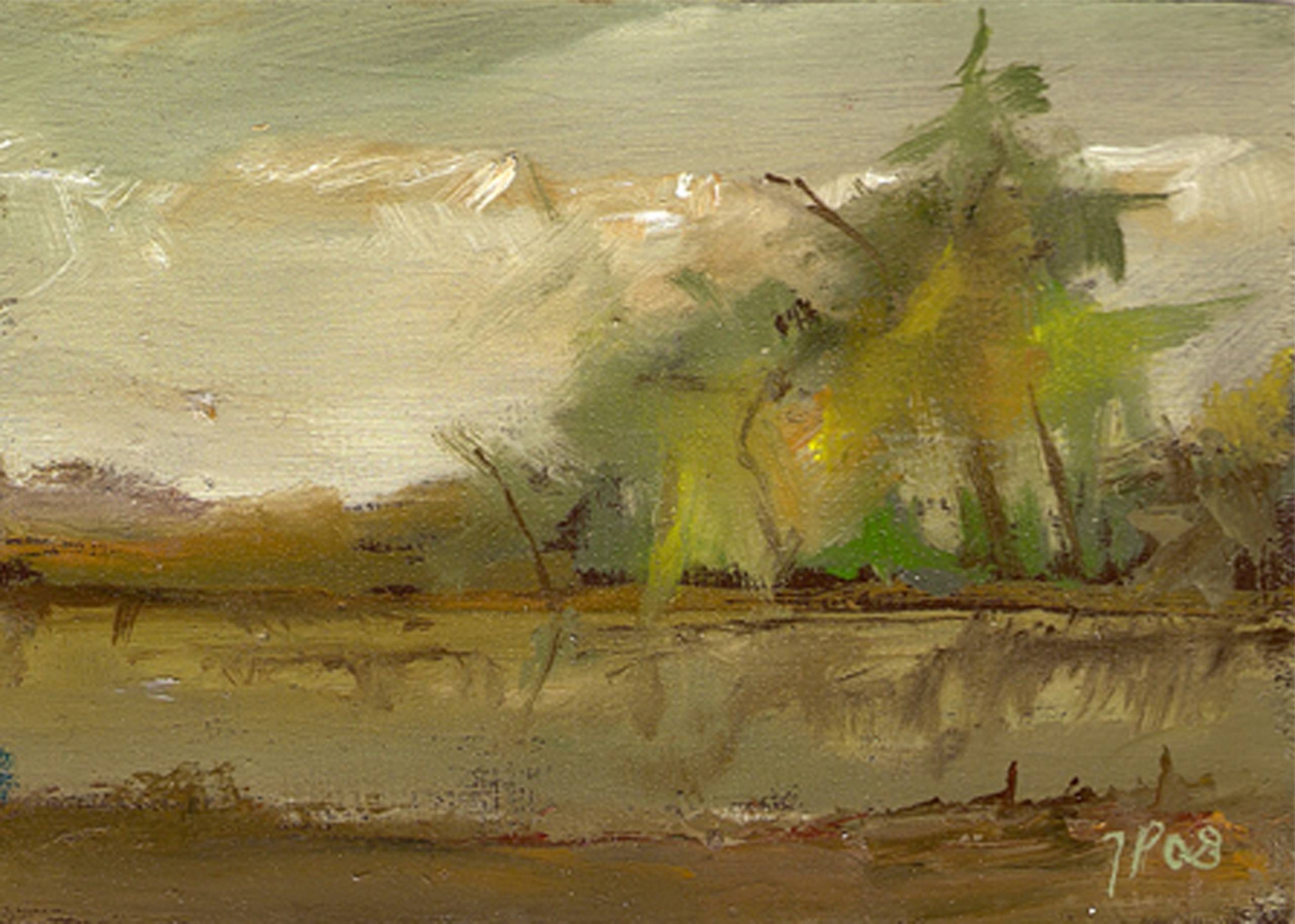 Obraz, pełen delikatnych, stonowanych barw, jak zielone, żółte i brązowe pociągnięcia pędzla, urzeka swoją spokojną kompozycją. Drzewa, nim zapadły w sen zimowy, tulą się do siebie w harmonii, tworząc gęsty, choć nieco zamglony gaj. Tło nieba jest rozmyte, niemalże senne, co nadaje całości subtelny, medytacyjny nastrój. Patrząc na to, aż chce się westchnąć i poczuć ten spokój, co nie? Zastanawiam się, jak artysta zdołał uchwycić tę ulotną chwilę. Te dynamiczne, choć zamierzone pociągnięcia pędzla, sugerujące pejzaż jakby pospiesznie, w biegu uchwycone? To prawdziwa sztuka. Technika impasto, widoczna w niektórych miejscach, nadaje obrazowi trójwymiarowości i życia, zachęca, by sięgnąć i dotknąć. Gdy patrzę na obraz, czuję błogość i pewną melancholię. Przypomina mi dzieciństwo i momenty beztroski. Jakbym znów biegł po łące z wiatrem we włosach. Czy również was to uderza? Może jestem nostalgiczny, ale “peaceful” to idealne słowo. Dla małego dziecka ten obraz byłby po prostu „jak z bajki”. A dla mnie, zatopionego w codzienności, stanowi okno do świata pełnego ciszy i refleksji.