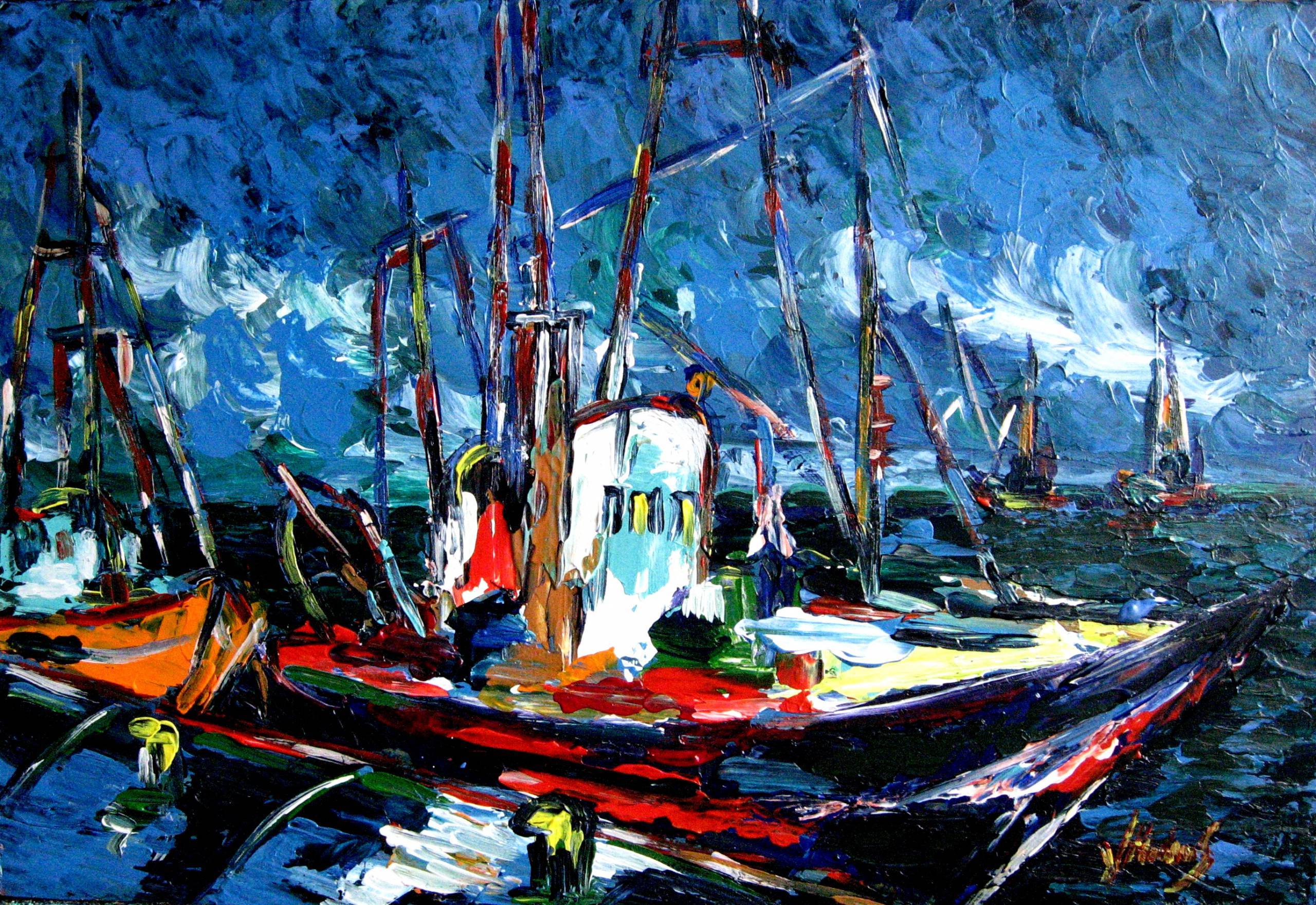 akryl na płycie, impast