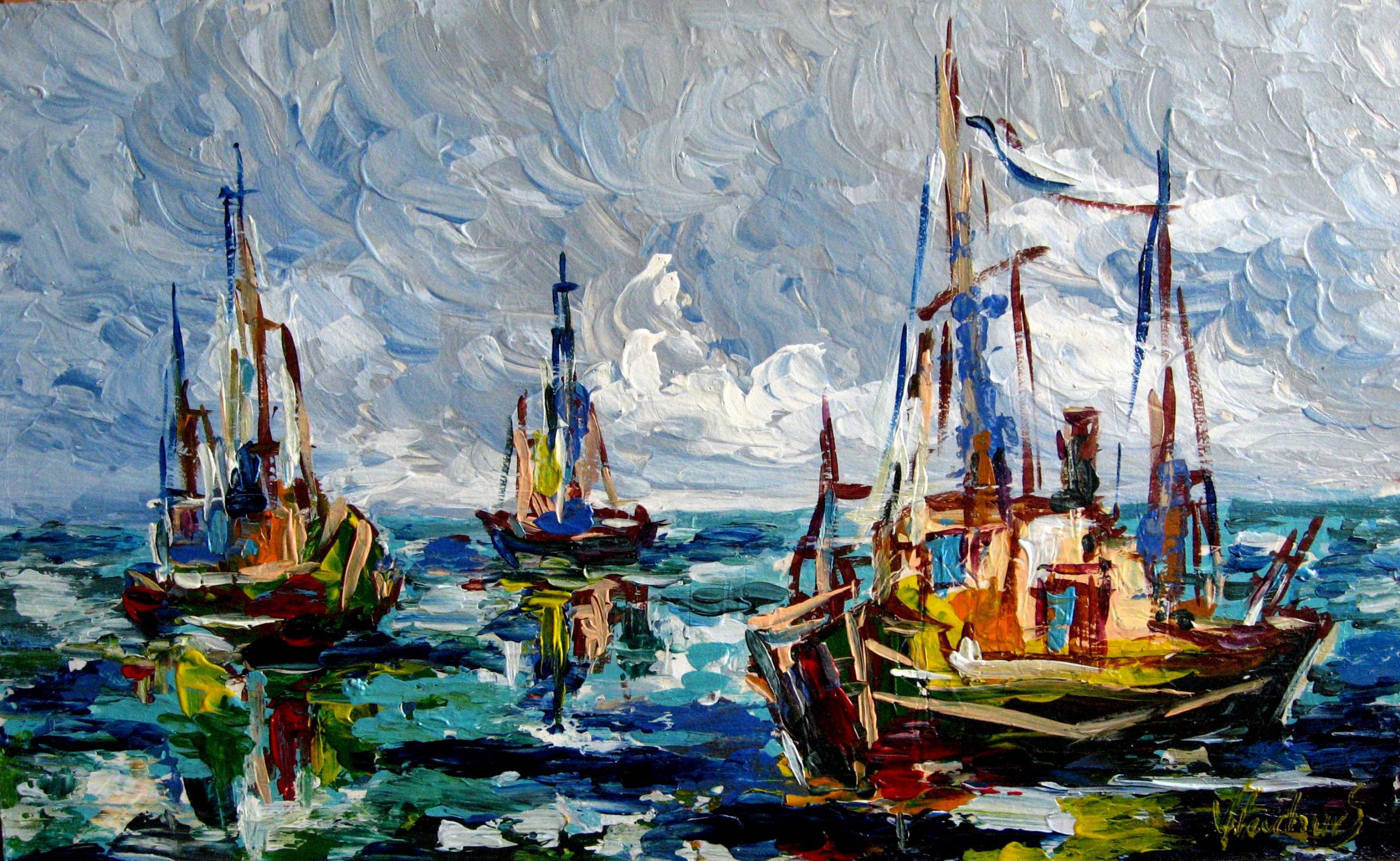 akryl na płycie, impast