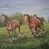 obraz nieoprawiony. Kompozycja z końmi. Obraz malowany farbami olejnymi f-my Talens Van Gogh.