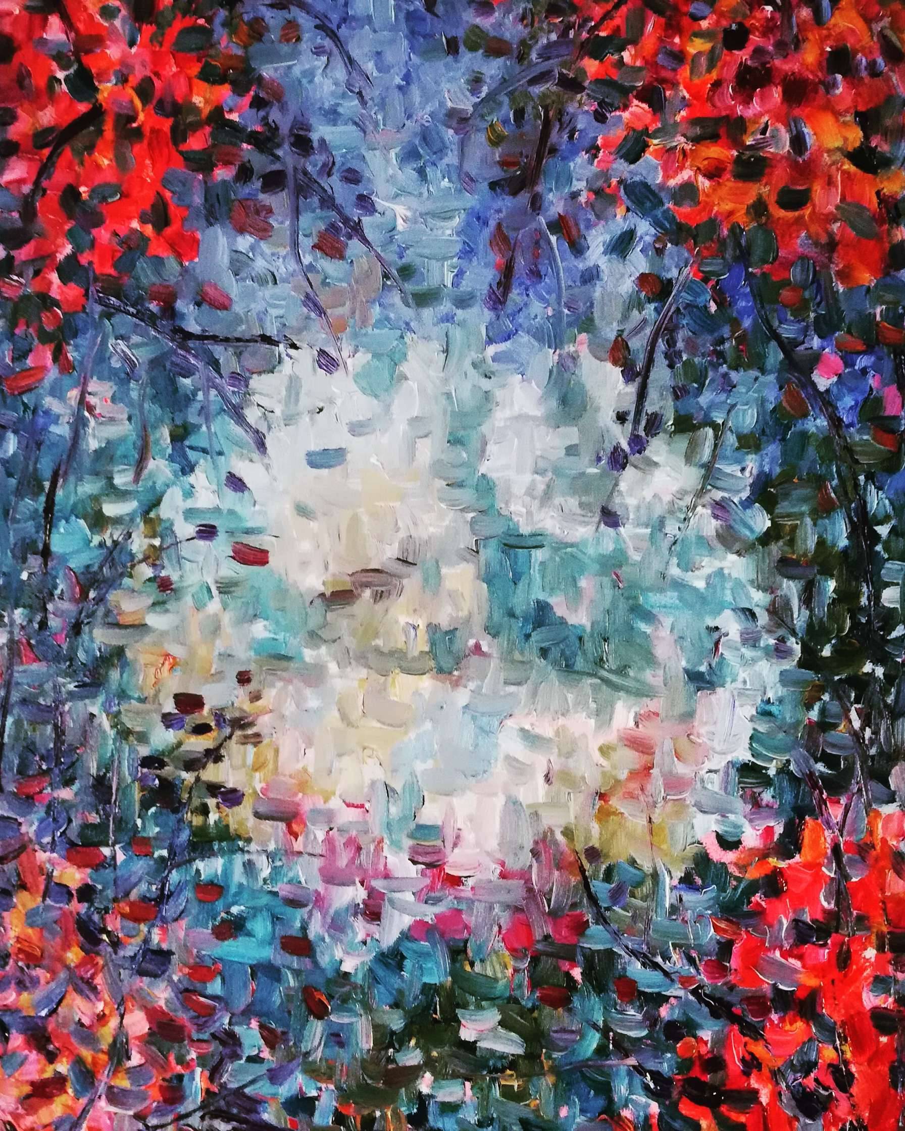 Obraz olejny 50x70 malowany na podobraziu płóciennym. Boki zamalowane.