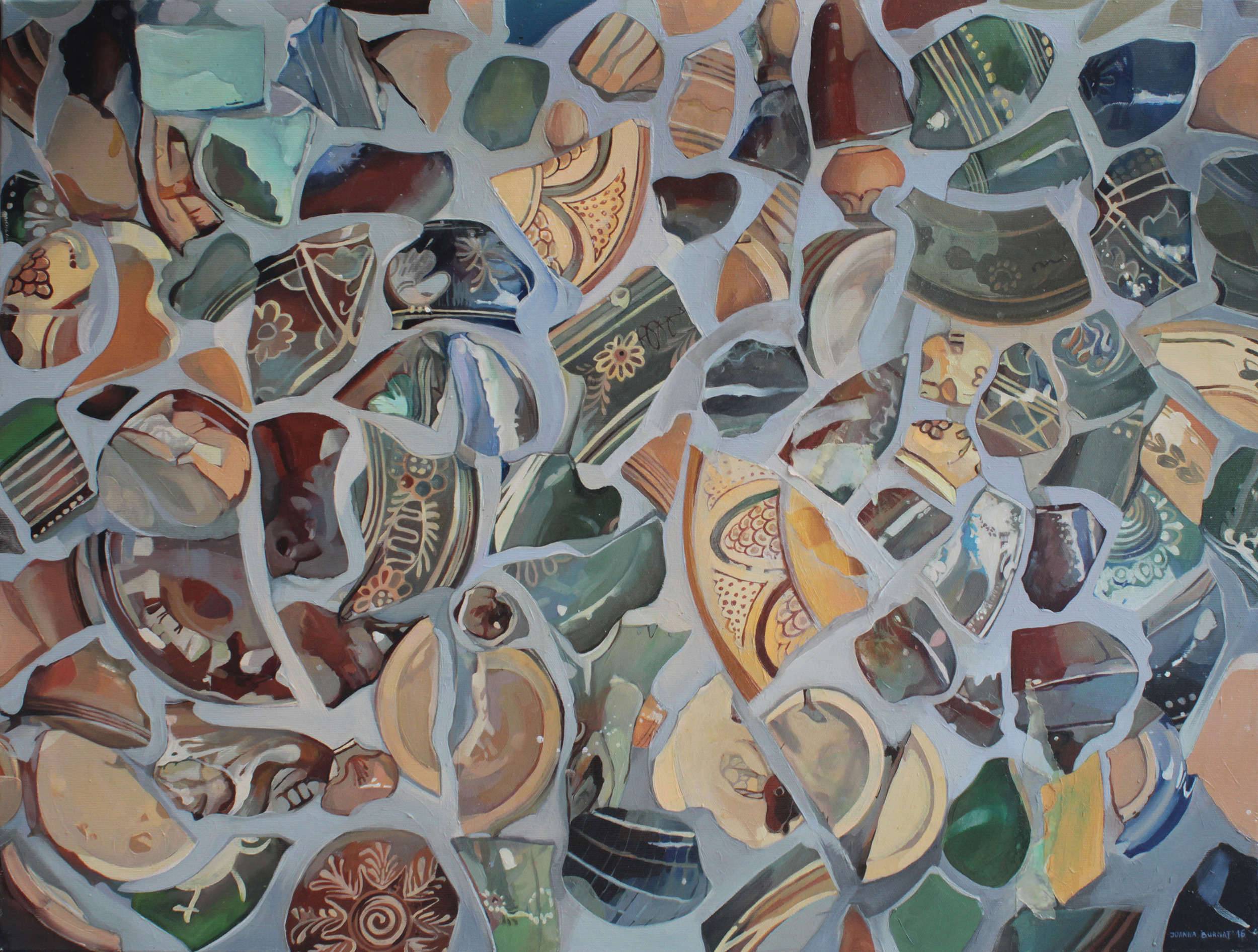 Obraz wzorowany na mozaikach zdobiących małopolskie przystanki autobusowe.