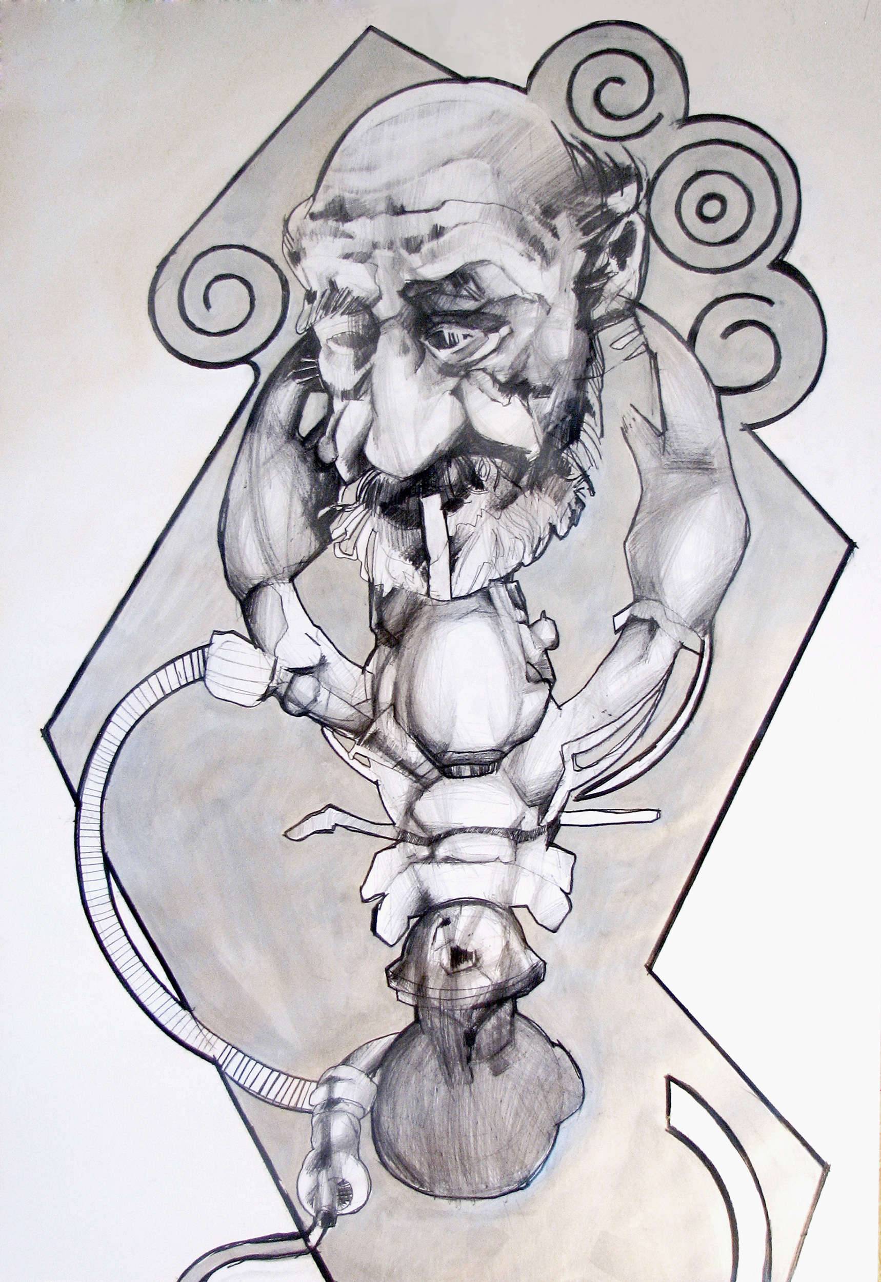 Rysunek z cyklu Znaki zodiaku. Technika ołówek plus akryl.