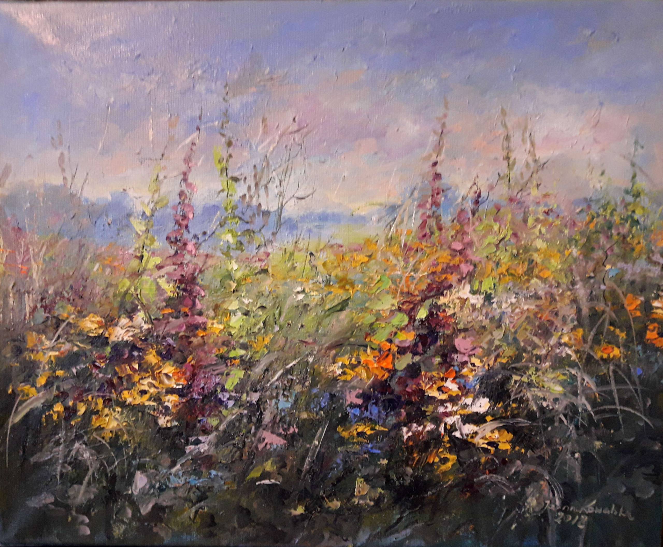 Majowa łąka,obraz kolorowy,gruba faktura farby,jako prezent na każdą okazję.