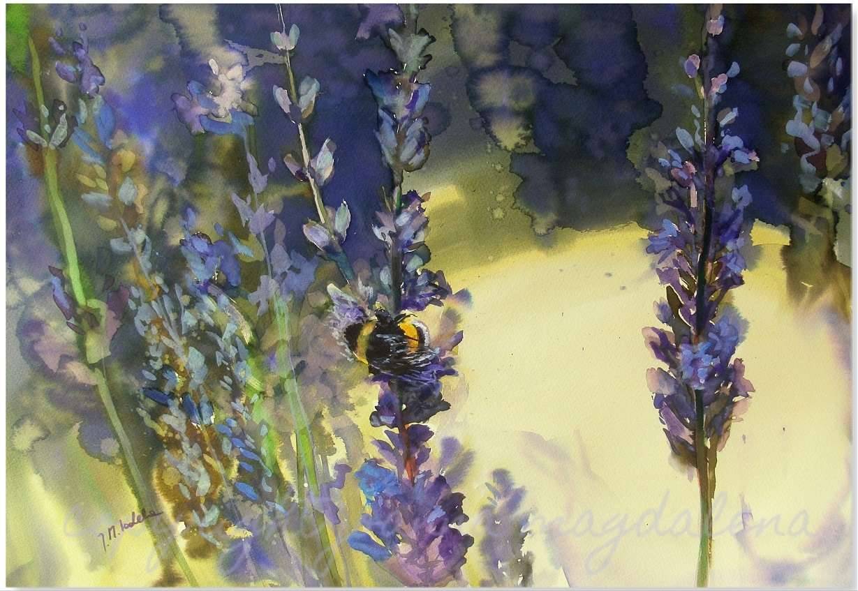 Duża ,nastrojowa akwarela przedstawiająca magiczny świat Fauny i Flory. Praca jest namalowana na wysokiej jakości papierze akwarelowym o trwałości archiwalnej, sygnowana w dolnym rogu, oprawiona w passe-partout. Wymiary akwareli z passe-partout wynoszą 50 cm x 70 cm. Obraz ten może stać sie uroczym prezentem dla romantyków i wielbicieli Natury. Wymiary: 38 cm x 56 cm Oprawa: passe-partout