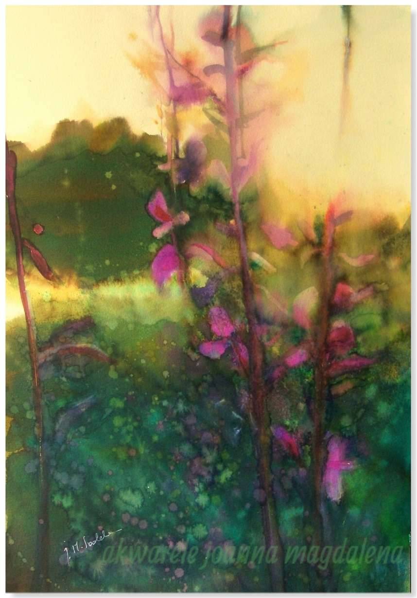 Nastrojowa akwarela inspirowana magicznym światem przyrody . Praca o wymiarach 38 cm x 56 cm, sygnowana, namalowana na wysokiej jakości papierze akwarelowym (100% bawełny) . Praca jest oprawiona w passe-partout. Wymiary z passe-partout : 50 cm x 70 cm. Akwarela ta może stać się udanym prezentem dla miłośników Natury .