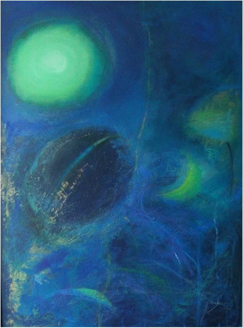 akryl na plotnie w drewnianej granatowej ramie.Wymiary z rama 72 cm x 55 cm.Zabezpieczony werniksem, sygnowany.