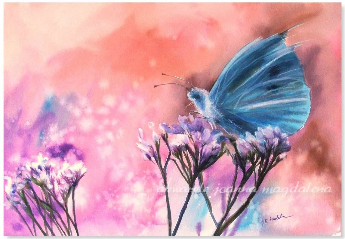 Duża ,romantyczna akwarela przedstawiająca magiczny świat roślin. Praca jest namalowana na wysokiej jakości papierze akwarelowym Bockingford o trwałości archiwalnej, sygnowana w dolnym rogu, oprawiona. Wymiary akwareli z oprawą wynoszą 50 cm x 70 cm. Obraz ten może stać sie atrakcyjnym prezentem dla wielbicieli Natury.