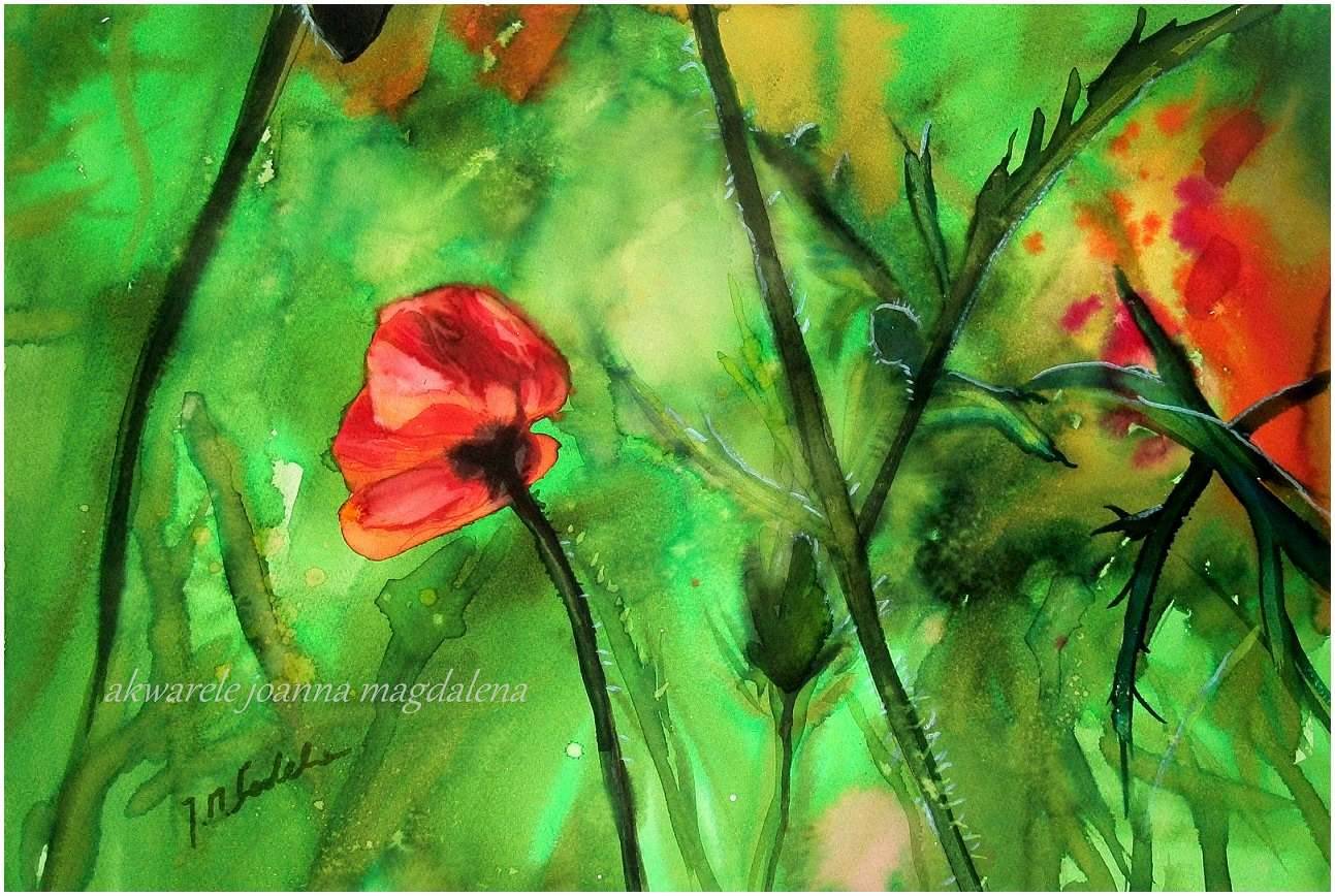 Duża ,romantyczna akwarela przedstawiająca magiczny świat roślin. Praca jest namalowana na wysokiej jakości papierze akwarelowym Bockingford o trwałości archiwalnej, sygnowana w dolnym rogu, oprawiona. Wymiary akwareli z oprawą wynoszą 50 cm x 70 cm. Obraz ten może stać sie atrakcyjnym prezentem dla wielbicieli Natury.