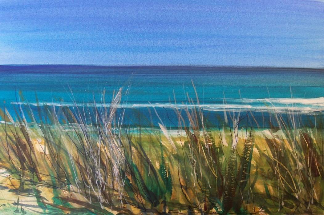 akwarela oprawiona w passé-partout, zabezpieczona werniksem