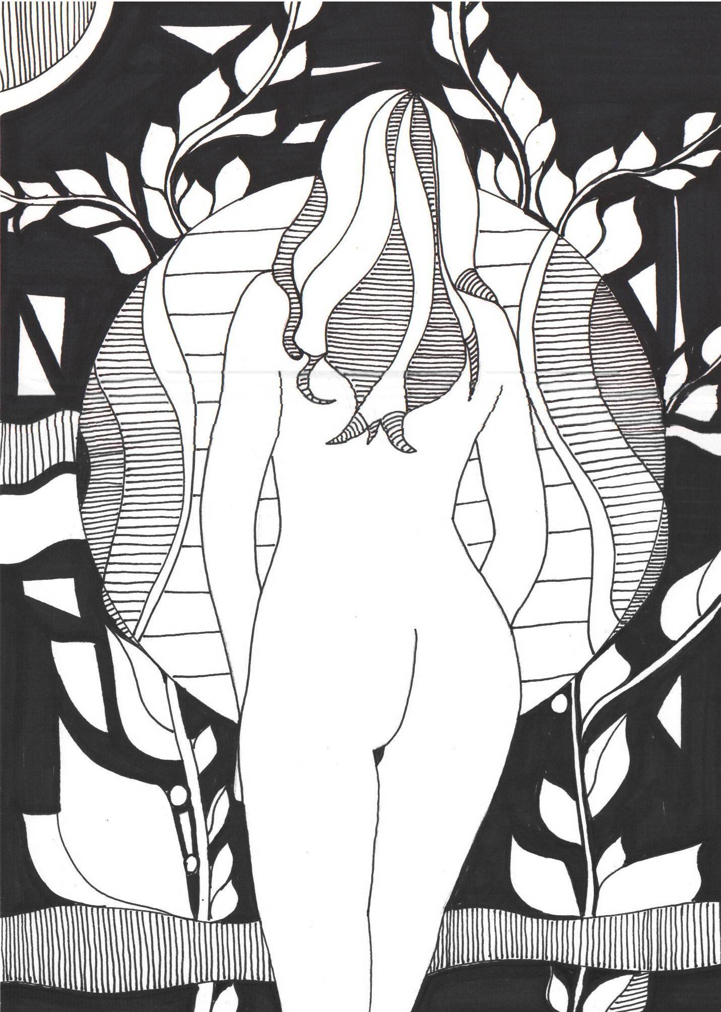 rysunek wykonany na papierze TECHNIKA WŁASNA z cyklu ,, Światy nieistniejące,, akt w stylu secesji autor; Joanna Małoszczyk ROZMIAR PRACY 24 x 34 cm praca na odwrocie sygnowana przesyłka na terenie Polski GRATIS