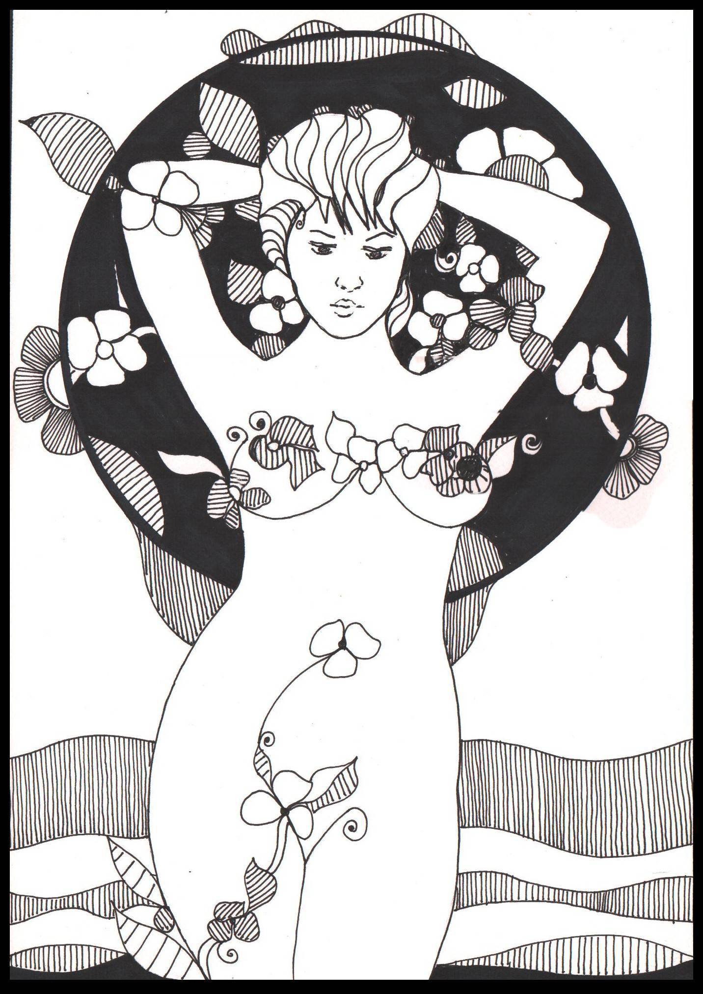 rysunek wykonany na papierze TECHNIKA WŁASNA z cyklu ,, Światy nieistniejące,, akt w stylu secesji autor; Joanna Małoszczyk ROZMIAR PRACY 24 x 34 cm praca na odwrocie sygnowana przesyłka na terenie Polski GRATIS