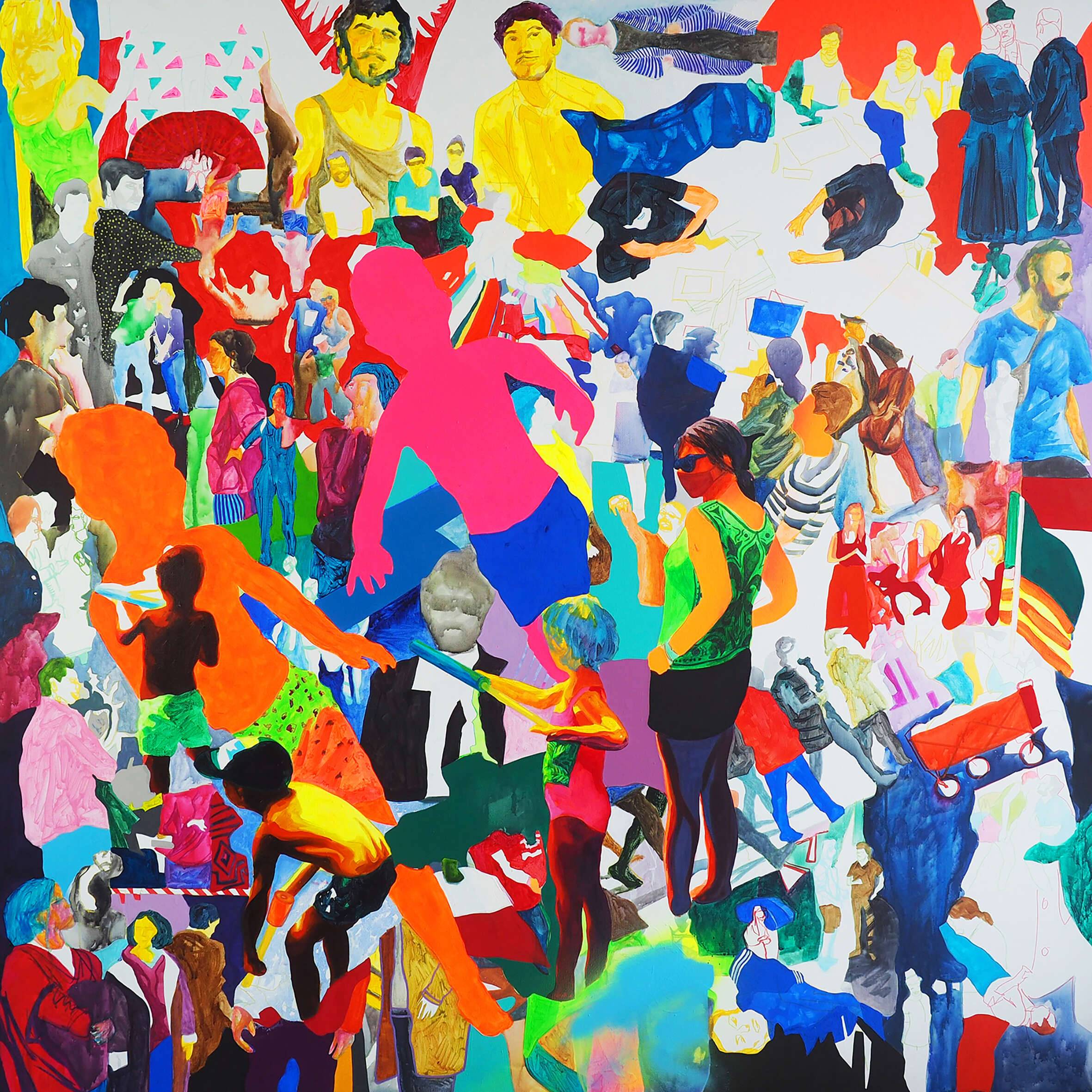 Without distance, akryl, olej, akwarela i spray na płótnie, 150x150 cm, 2020