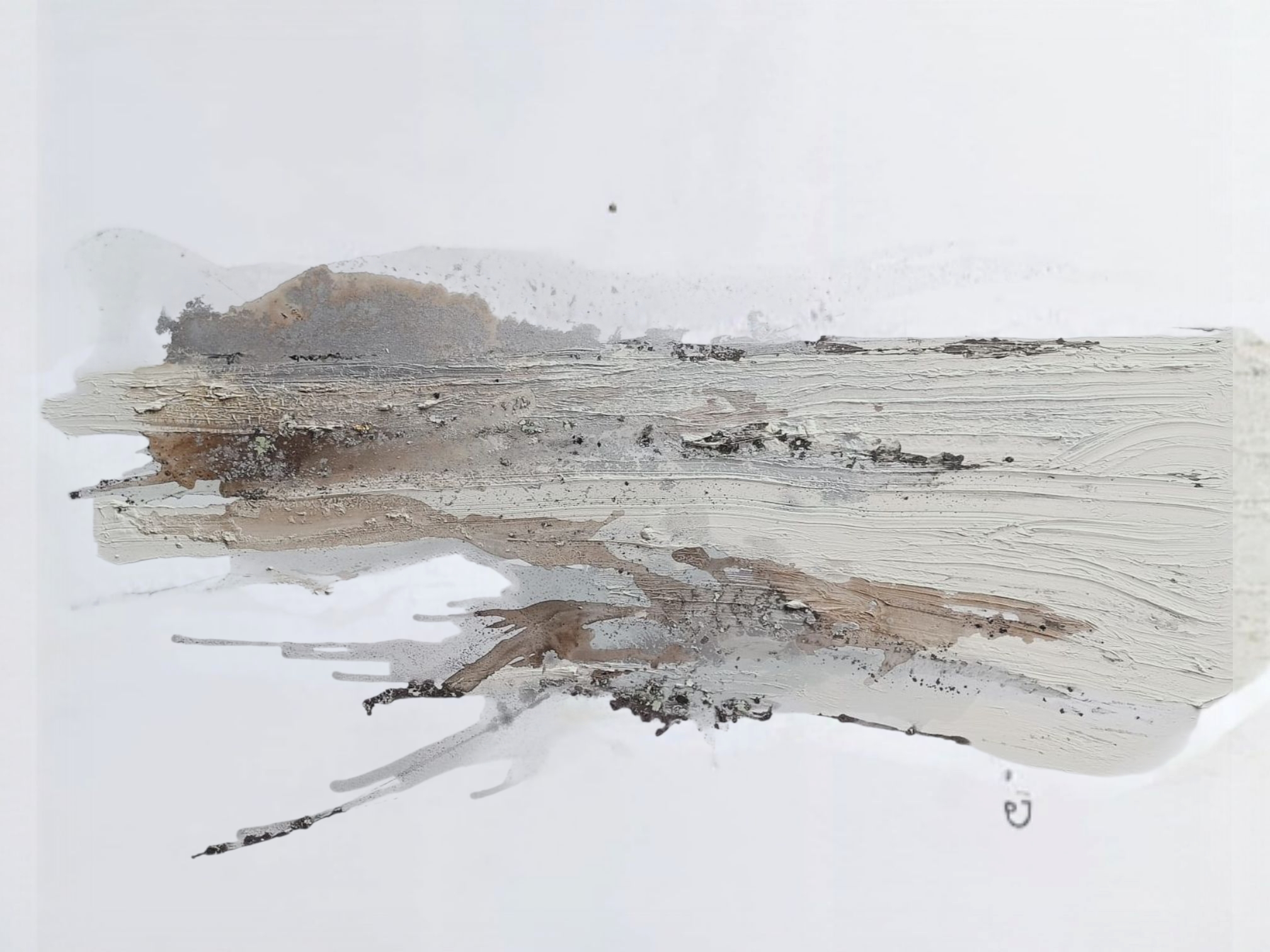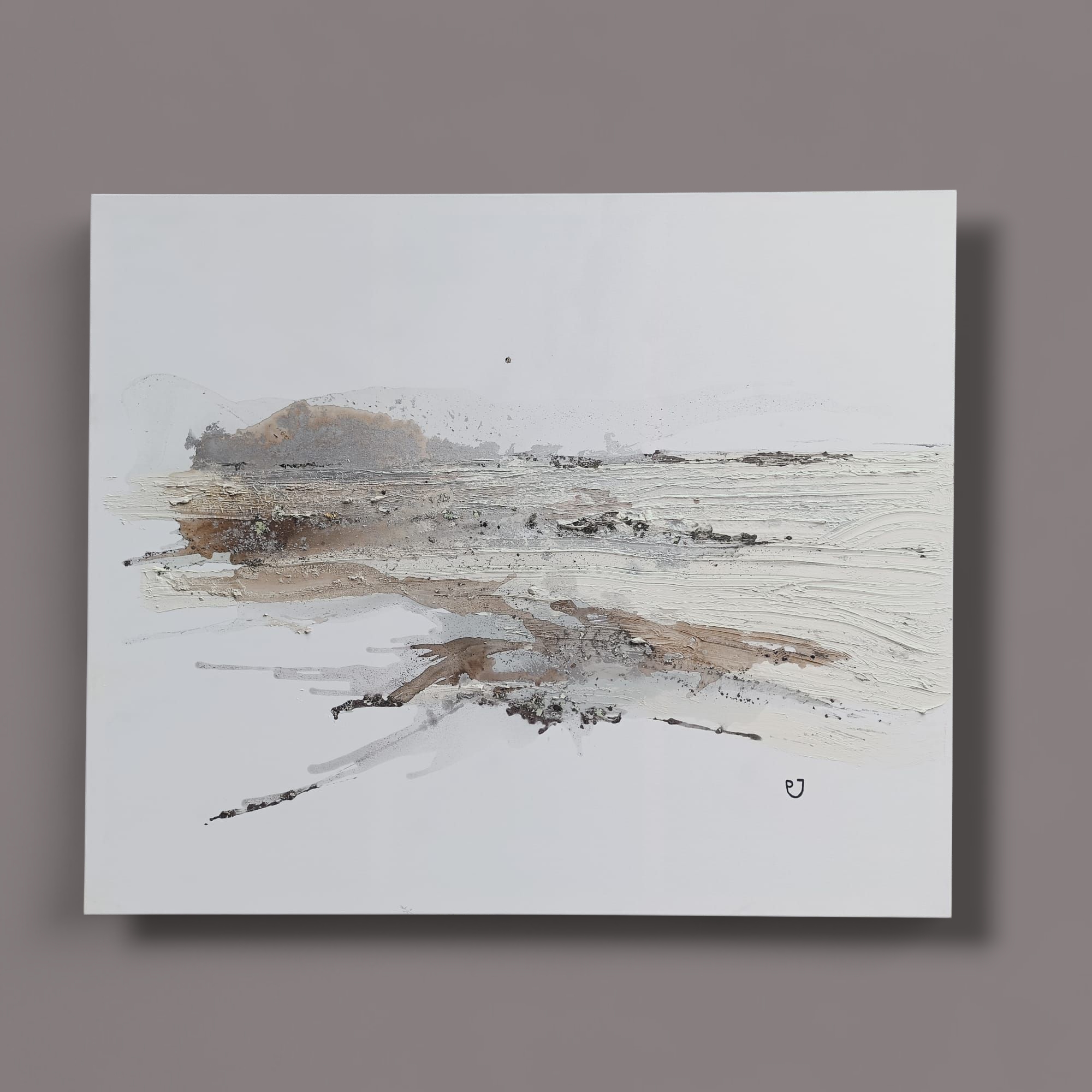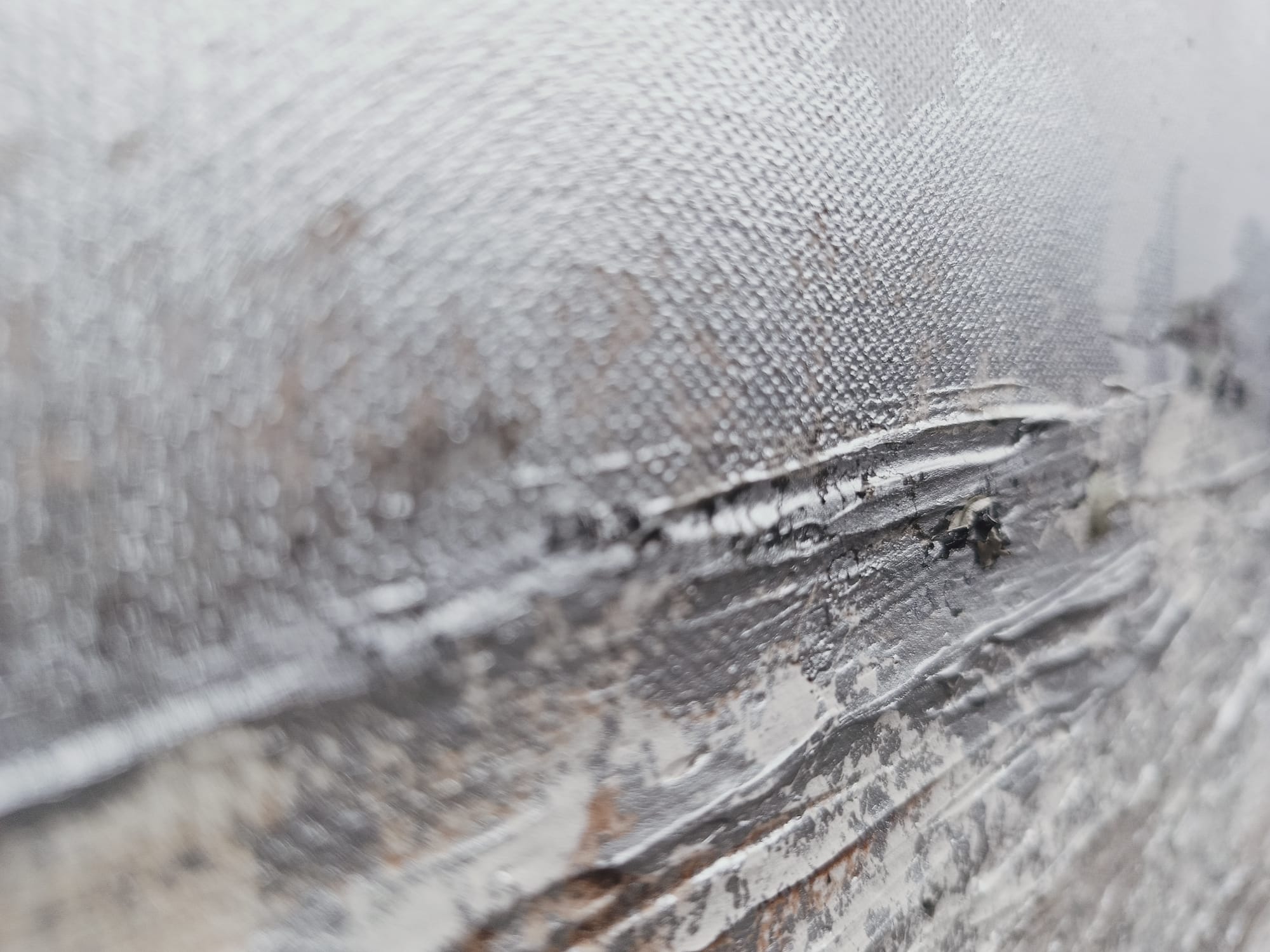 „Horyzont” (2025) Joanny Pyrskały to monumentalna praca wykonana techniką mixed media, należąca do serii „Przenikanie”. To minimalistyczna abstrakcja, w której artystka bada subtelną granicę między naturą, wspomnieniem i świadomością. Linia horyzontu staje się tu punktem wyjścia do refleksji nad tym, co widzialne i niewidzialne, rzeczywiste i wyobrażone. Obraz operuje ciszą, przestrzenią i światłem, tworząc wrażenie spokoju, a jednocześnie napięcia między dwoma światami, tym, co bliskie i tym, co pozostaje poza zasięgiem. Pyrskała w swojej twórczości często sięga po motywy wody i pejzażu, traktując je jako metaforę emocji i ludzkiego doświadczenia. Jej prace łączą organiczność natury z architektonicznym porządkiem formy, zachowując niezwykłą wrażliwość na fakturę i kolor. „Horyzont” zaprasza do zatrzymania się i spojrzenia w głąb przestrzeni, ciszy, a może samego siebie.