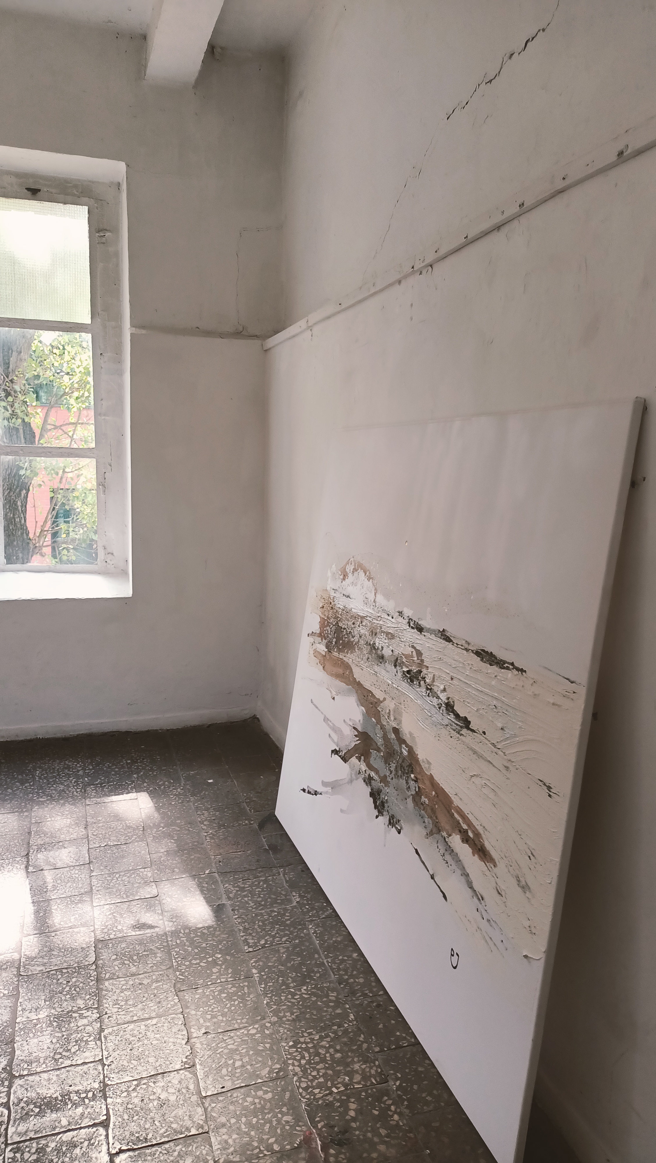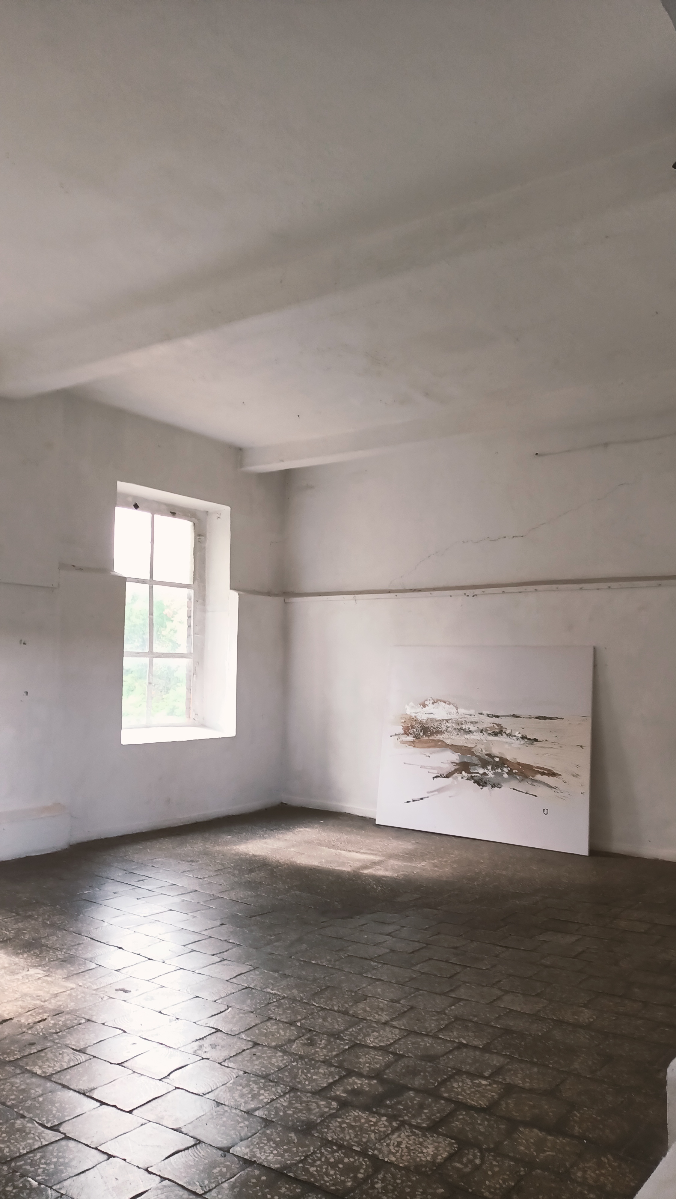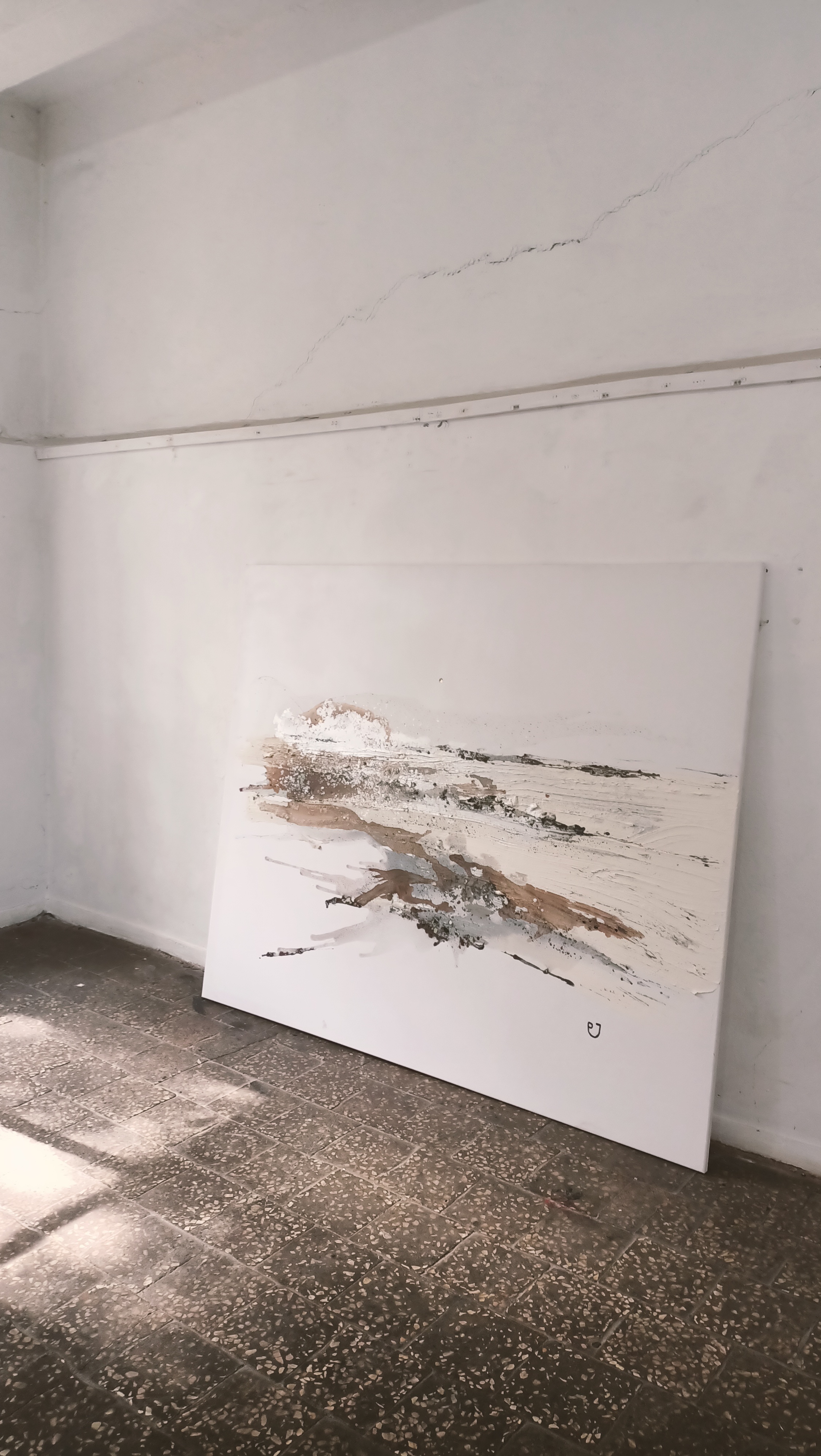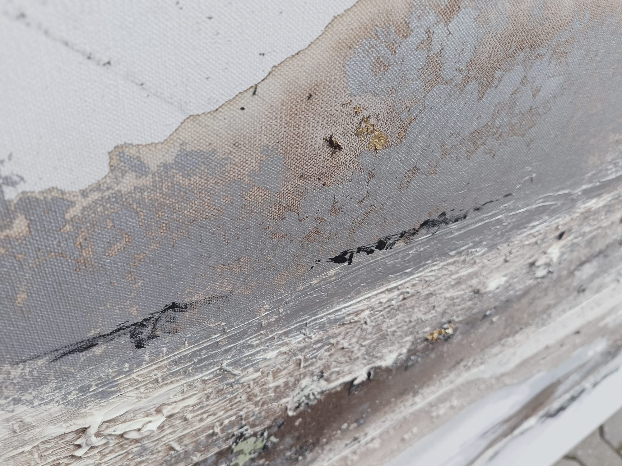 „Horyzont” (2025) Joanny Pyrskały to monumentalna praca wykonana techniką mixed media, należąca do serii „Przenikanie”. To minimalistyczna abstrakcja, w której artystka bada subtelną granicę między naturą, wspomnieniem i świadomością. Linia horyzontu staje się tu punktem wyjścia do refleksji nad tym, co widzialne i niewidzialne, rzeczywiste i wyobrażone. Obraz operuje ciszą, przestrzenią i światłem, tworząc wrażenie spokoju, a jednocześnie napięcia między dwoma światami, tym, co bliskie i tym, co pozostaje poza zasięgiem. Pyrskała w swojej twórczości często sięga po motywy wody i pejzażu, traktując je jako metaforę emocji i ludzkiego doświadczenia. Jej prace łączą organiczność natury z architektonicznym porządkiem formy, zachowując niezwykłą wrażliwość na fakturę i kolor. „Horyzont” zaprasza do zatrzymania się i spojrzenia w głąb przestrzeni, ciszy, a może samego siebie.