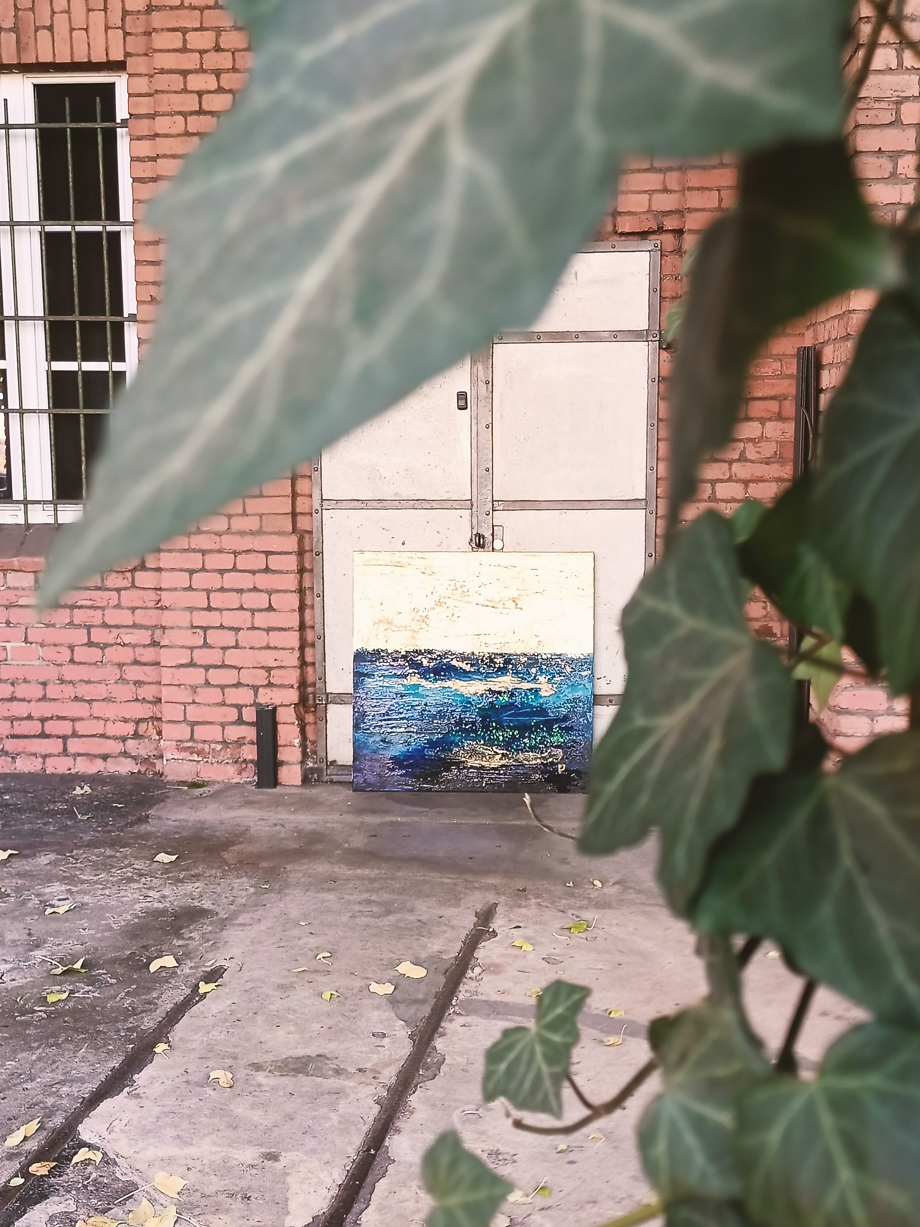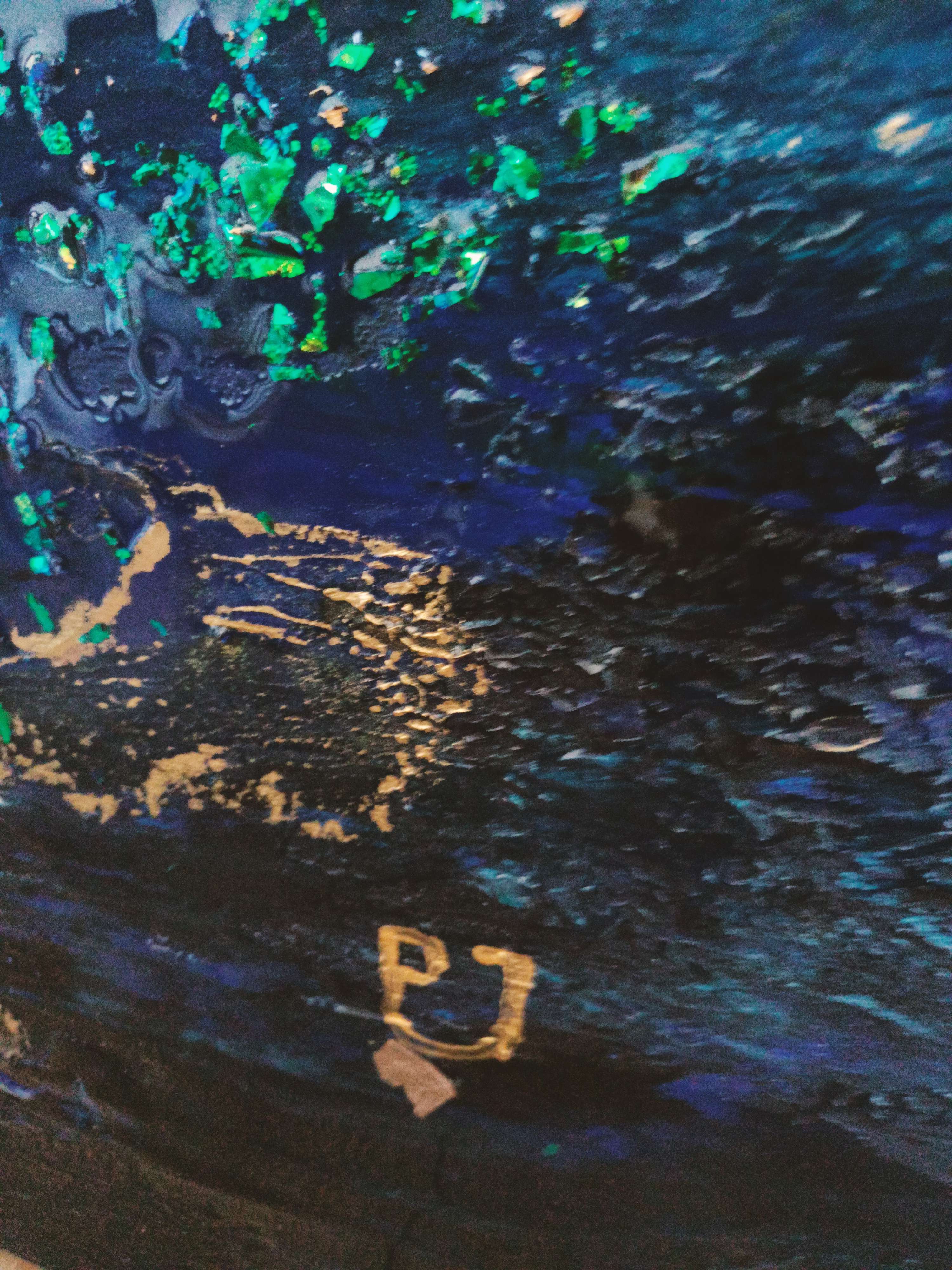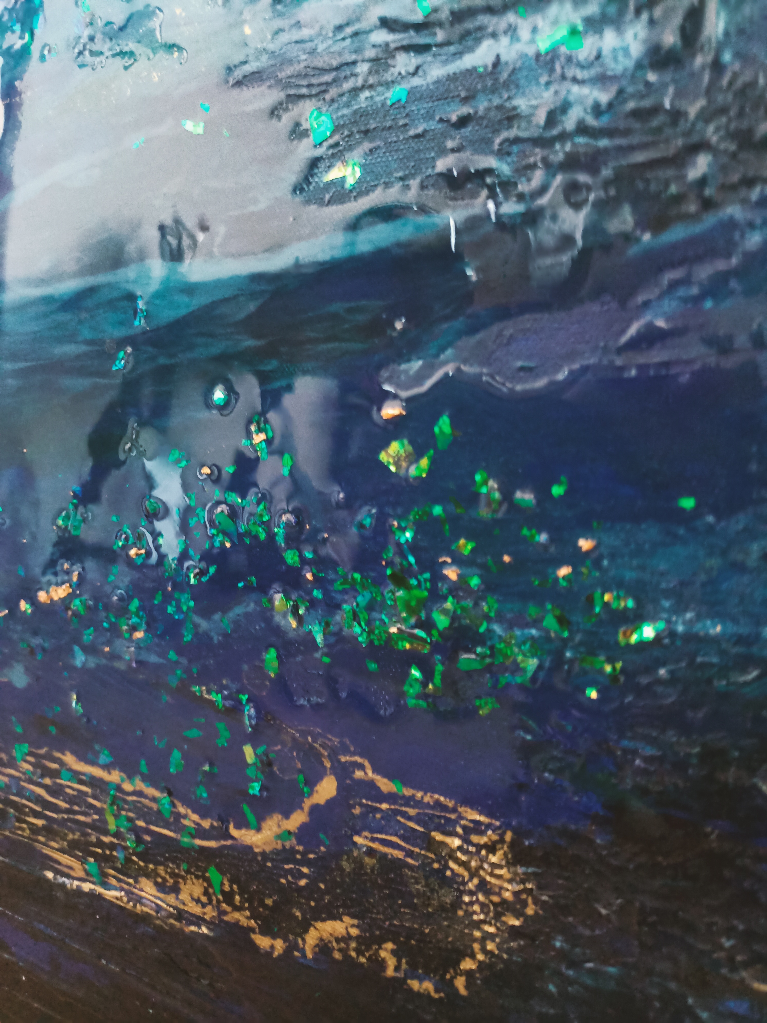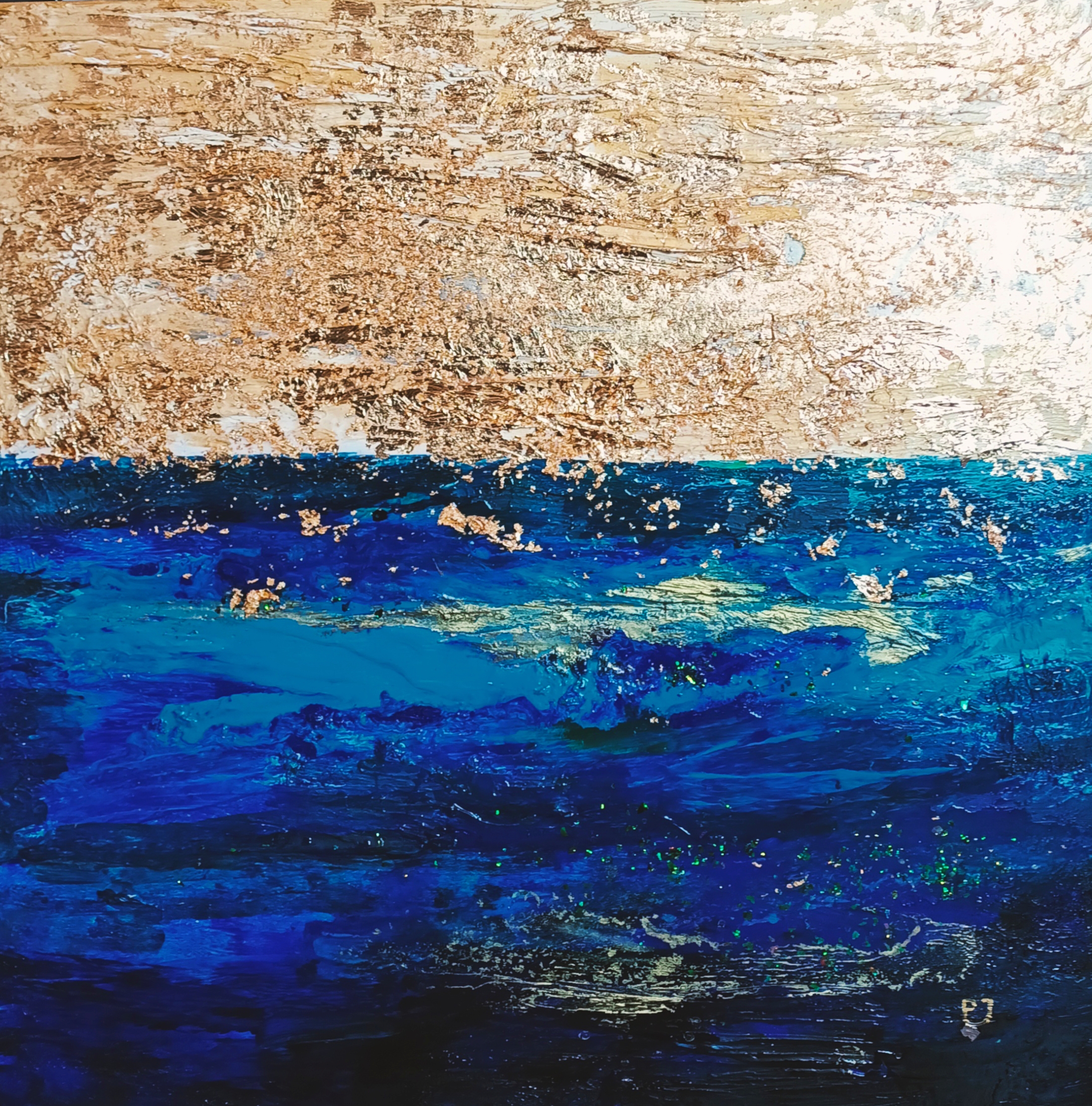 „Lagoon Horizon” Joanny Pyrskały to abstrakcyjny obraz o wymiarach 100 × 100 cm, wykonany z użyciem ekologicznej żywicy Art Resin, z dodatkiem płatków złota i subtelnej struktury 3D. Praca należy do cyklu „Lagoon”, prezentując własną interpretację przestrzeni, światła i głębi. Kompozycja łączy migotanie złotych akcentów z przezroczystością żywicy, tworząc efekt tafli wody odbijającej światło i ruch natury. „Lagoon Horizon” emanuje spokojem i elegancją, balansując między abstrakcyjną formą a metaforą natury i emocji. Obraz doskonale wpisuje się w nowoczesne, minimalistyczne wnętrza, wprowadzając atmosferę harmonii, luksusowego blasku i medytacyjnej głębi. Obraz wystawiany na wystawie zbiorowej ANATOMIA RELACJI w Galerii Sztuki współczesnej Szyb Wilson w Katowicach (09-10.2025).