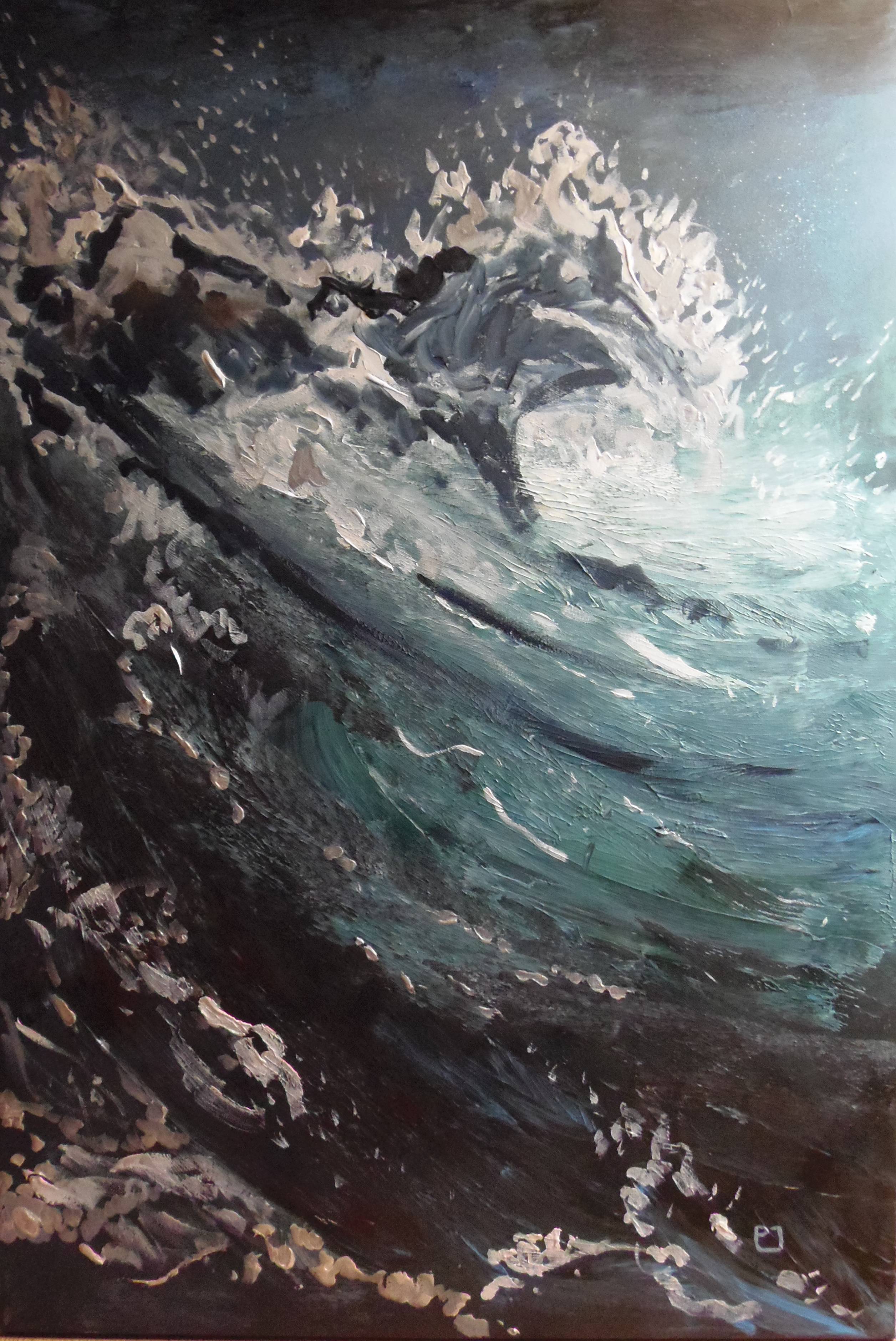 Obraz abstrakcyjny, ekspresyjny. Doskonały do nowoczesnych wnętrz. Ogrom fali we wzburzonym morzu porusza emocje, wywołuje niepokój... Obraz sygnowany. Jedyny egzemplarz. Obraz na płótnie wysokiej jakości - krosno sosnowe, bawełna włoska.