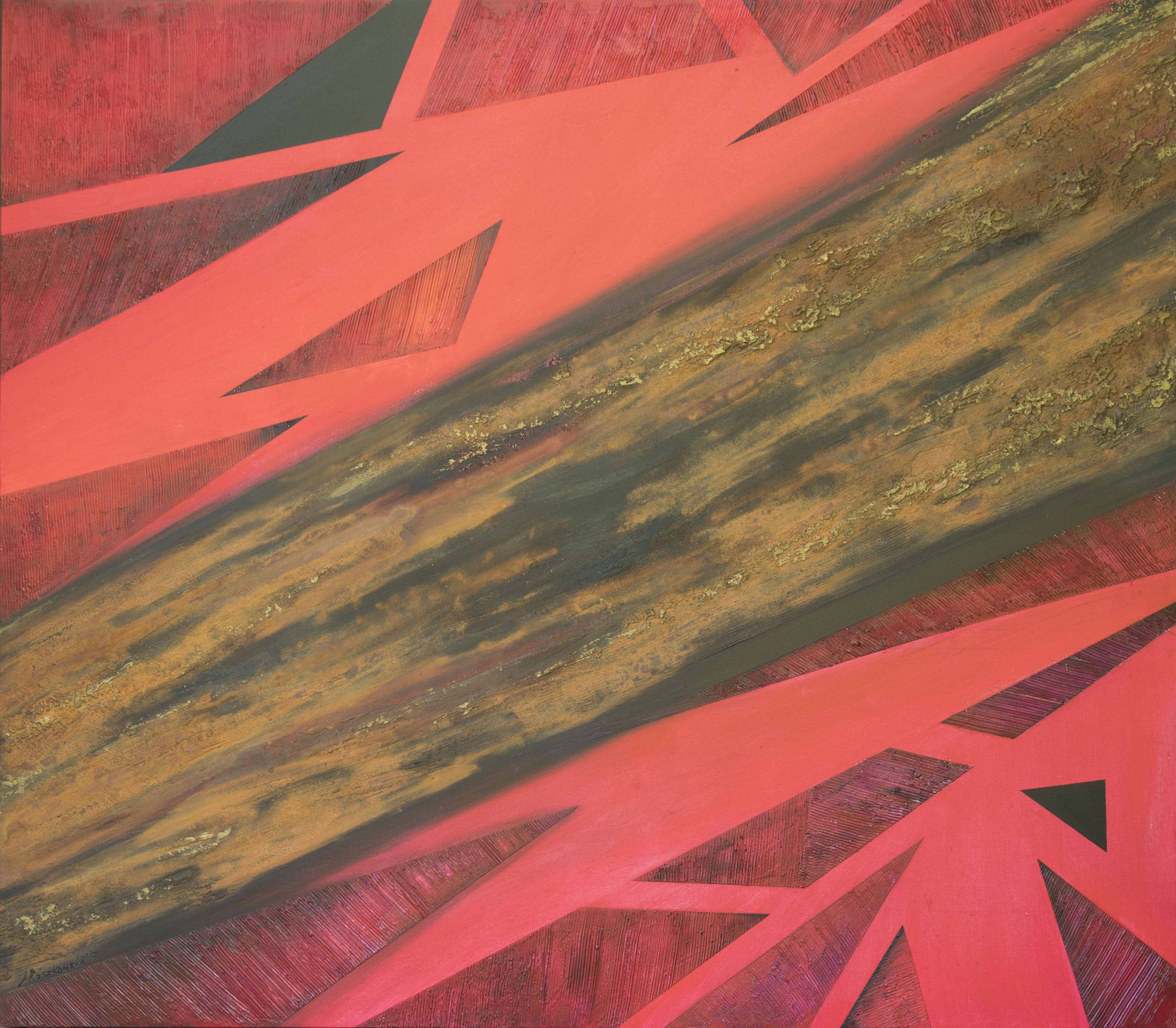 Akryl na płótnie, z wykorzystaniem rdzy jako medium malarskiego.