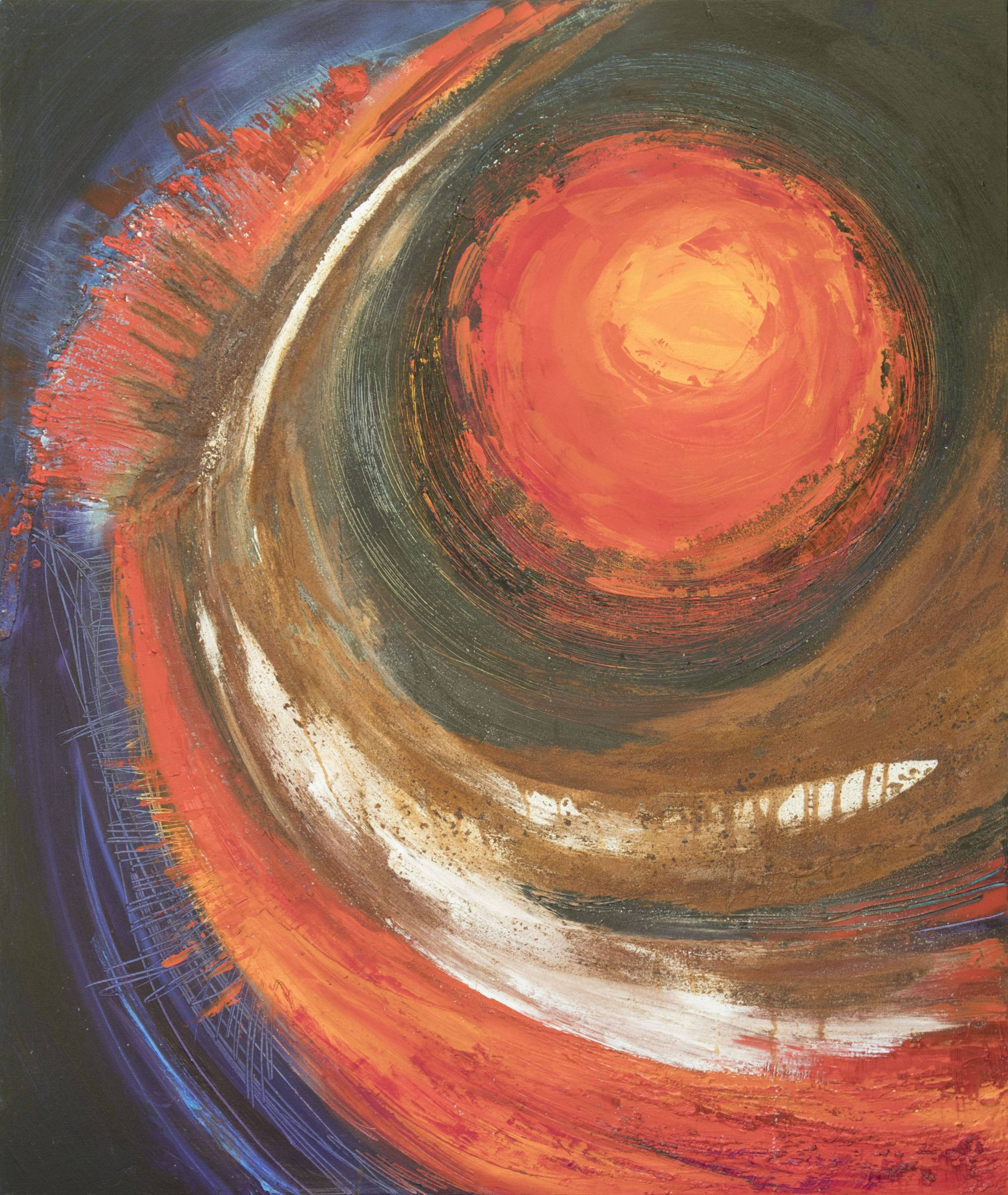 Akryl na płótnie, z wykorzystaniem rdzy jako medium malarskiego.