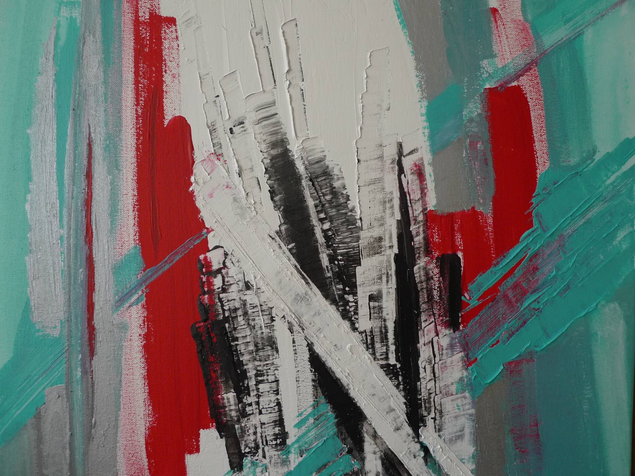 Ten obraz to prawdziwy wulkan kontrastów. Dominują w nim śmiałe czerwienie, głębokie czernie i subtelne szarości, przeplatane turkusem. Całość kompozycji przypomina kaskadę barw, które niczym krople farby spływają po płótnie. Wygląda jakby artysta pozwolił im spontanicznie odpłynąć, chociaż to kontrolowany chaos. Atmosfera tego dzieła jest napięta, niemal elektryzująca. Abstrakcyjna forma i dynamiczne linie tworzą uczucie ruchu, jakby obraz chciał z niego wyskoczyć. Technika użyta przez artystę to impasto, co daje teksturowany efekt, dodając głębi i trójwymiarowości. Ten styl wywołuje różnorodne emocje. Można pomyśleć: Wow, to jest intense! Dzieło może być interpretowane jako wyraz wewnętrznego niepokoju, ale dla mnie to przypomnienie o ludzkiej naturze pełnej sprzeczności. Jeden z widzów może poczuć niepokój, drugi – fascynację. Małe dzieciątko powiedziałoby: To jak kolorowy bałagan! Patrząc na to, czuję pewną buntowniczą energię, ale też swoistą harmonię. Ten obraz naprawdę zmusza do refleksji i zachęca do odkrycia czegoś nowego w sobie.