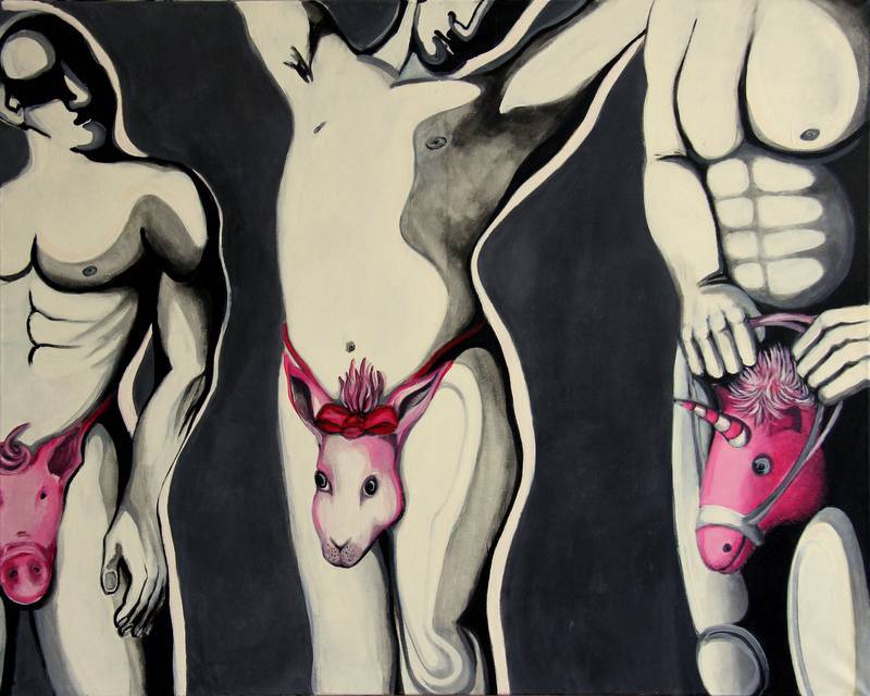 Jola Yolander Michalak, obraz z cyklu "Life is Life" - Obiektem moich malarskich rozważań jest mężczyzna a raczej jego męskość. Wiedza ta jest jednak niewystarczająca by rozwiązać nurtujące mnie zagadnienie współczesnej męskiej seksualności. Jest na razie pierwszą próbą łącznika obrazu i obserwacji. Wprowadzając widza w atmosferę konkursu piękności, gdzie zazwyczaj kobieta jako płeć piękna poddawana jest ocenie, ja przeciwstawiam w swojej pracy, na sposób z lekka ironiczny, obraz męskiej dumy odsyłając do tajemnic rzeczywistości. I w rzeczy samej klasyfikacji szokującej. Mamy portrety zwierzęce, które stając się indywidualną narracją, w każdym z nas tworzą materię charakterologicznych typów skojarzeń animalistycznych. Personifikacja zwierząt jest w gruncie rzeczy kluczem do pytań o współczesny obraz męskiej roli w relacjach międzyludzkich oczekujący kolejnych moich malarskich podejść ku rozwiązaniu zagadki :)