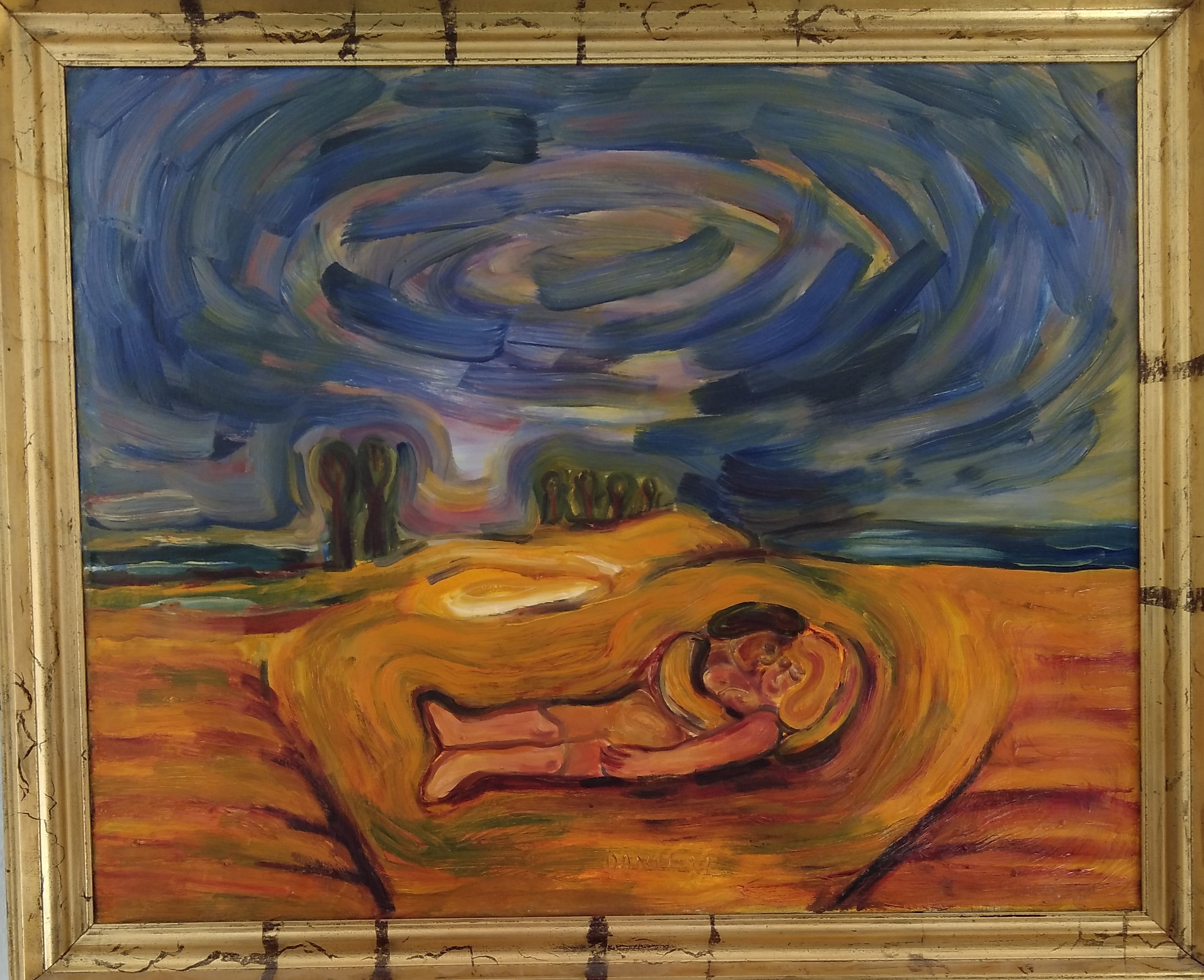 To obraz bajkowy, wesoły, kolorowy, radosny, chociaż nie dla dzieci to nie drastyczny. Oprawiony w niepowtarzalną ramę mojego własnego pomysłu i wykonania . Myślę, że całość koi zmysły.
