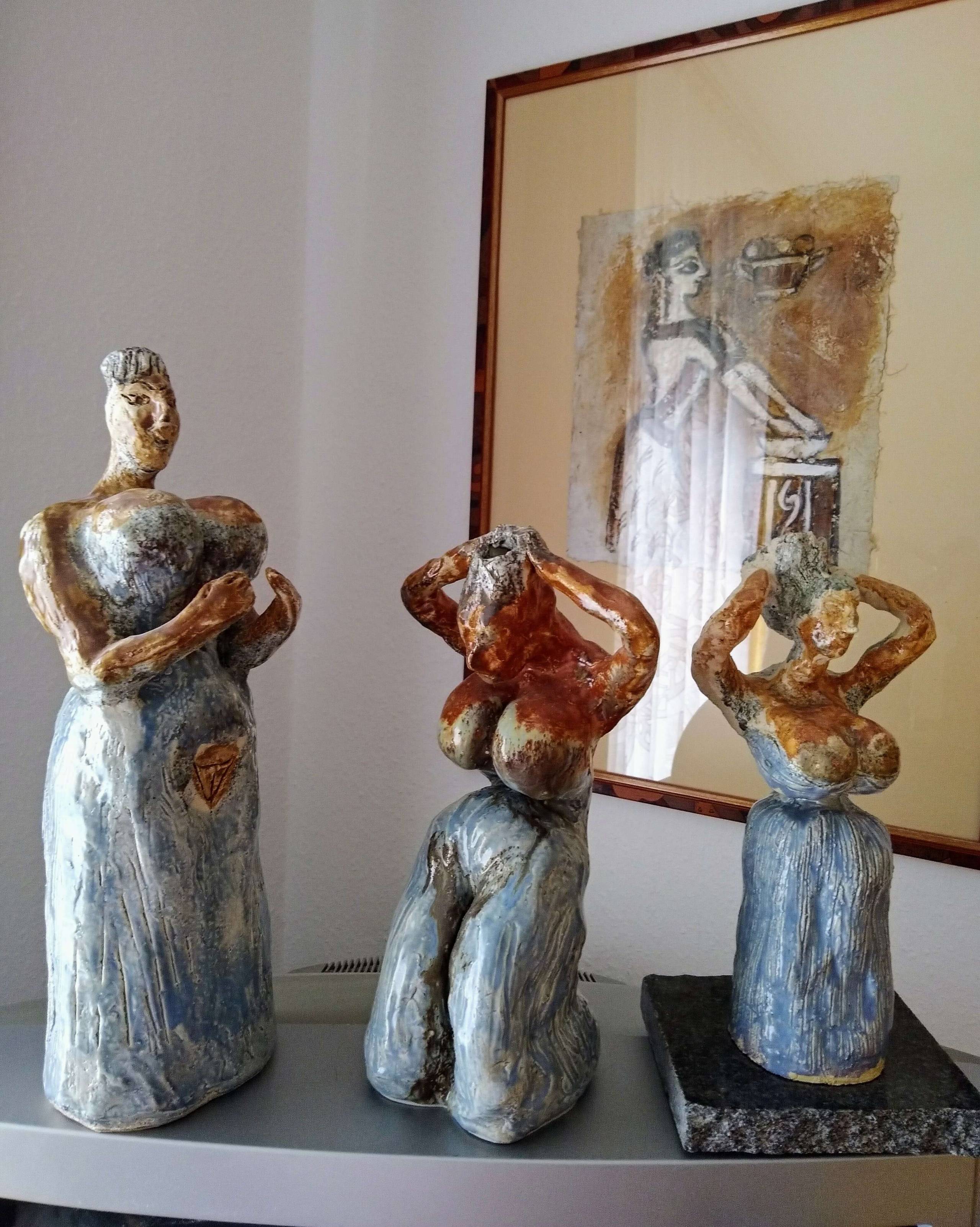 Podobnie jak inne figury o tematyce minojskiej, dla wielbicieli wspomnień tej sztuki. Historia Knossos to Memento przemijania i przestroga aby cieszyć się tym co jest tu i teraz, bo jutro może nastąpić potop....... Moje figury są wykonane z glazurowanej i podwójnie wypalanej ceramiki. Ceramika jest najtrwalszym materiałem w przyrodzie, ale też niestety łatwo ją potłuc na kawałki.