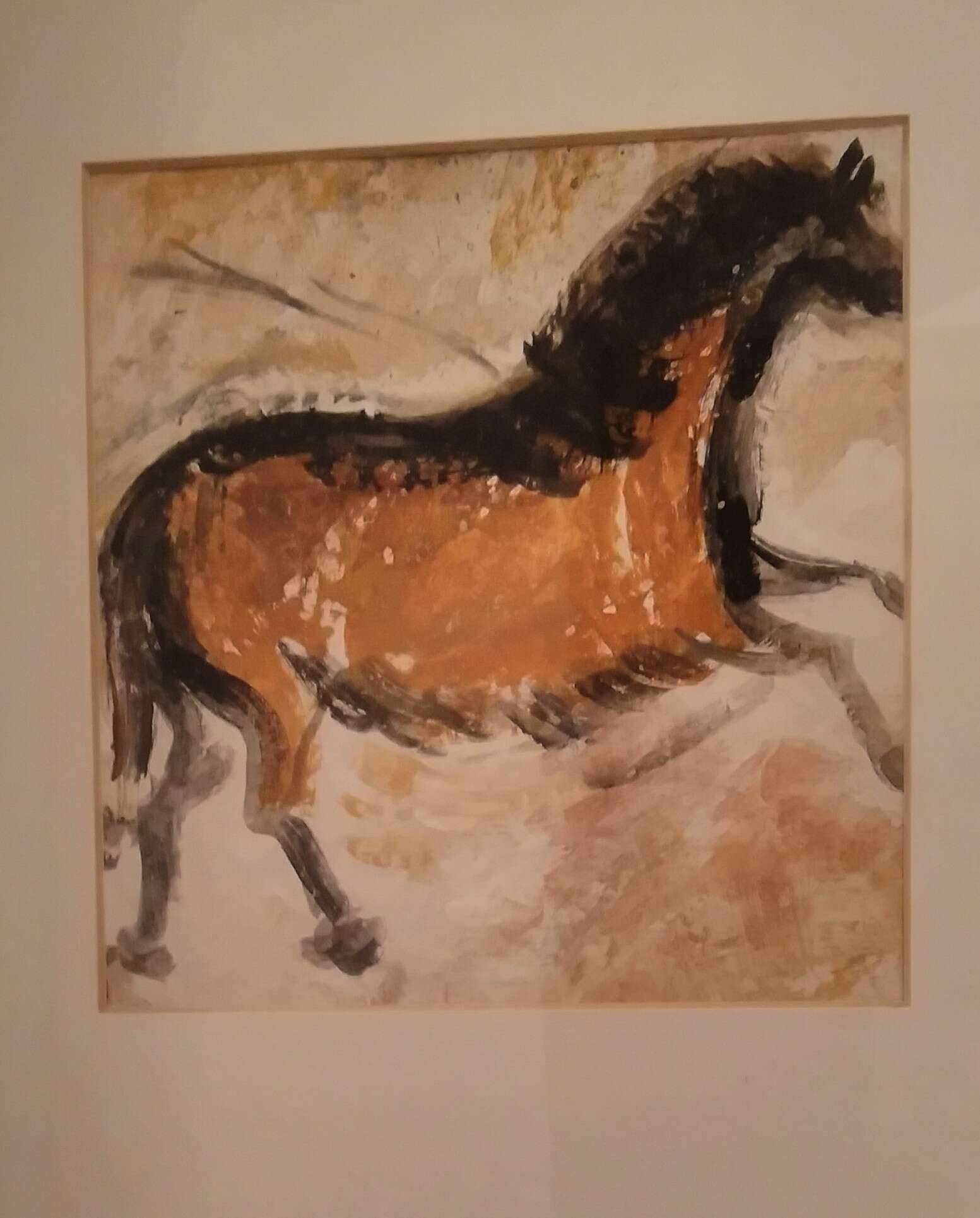 Konik na wzór malowideł naskalnych, może komuś przypadnie do gustu, z paspartu i w ramce, za szkłem